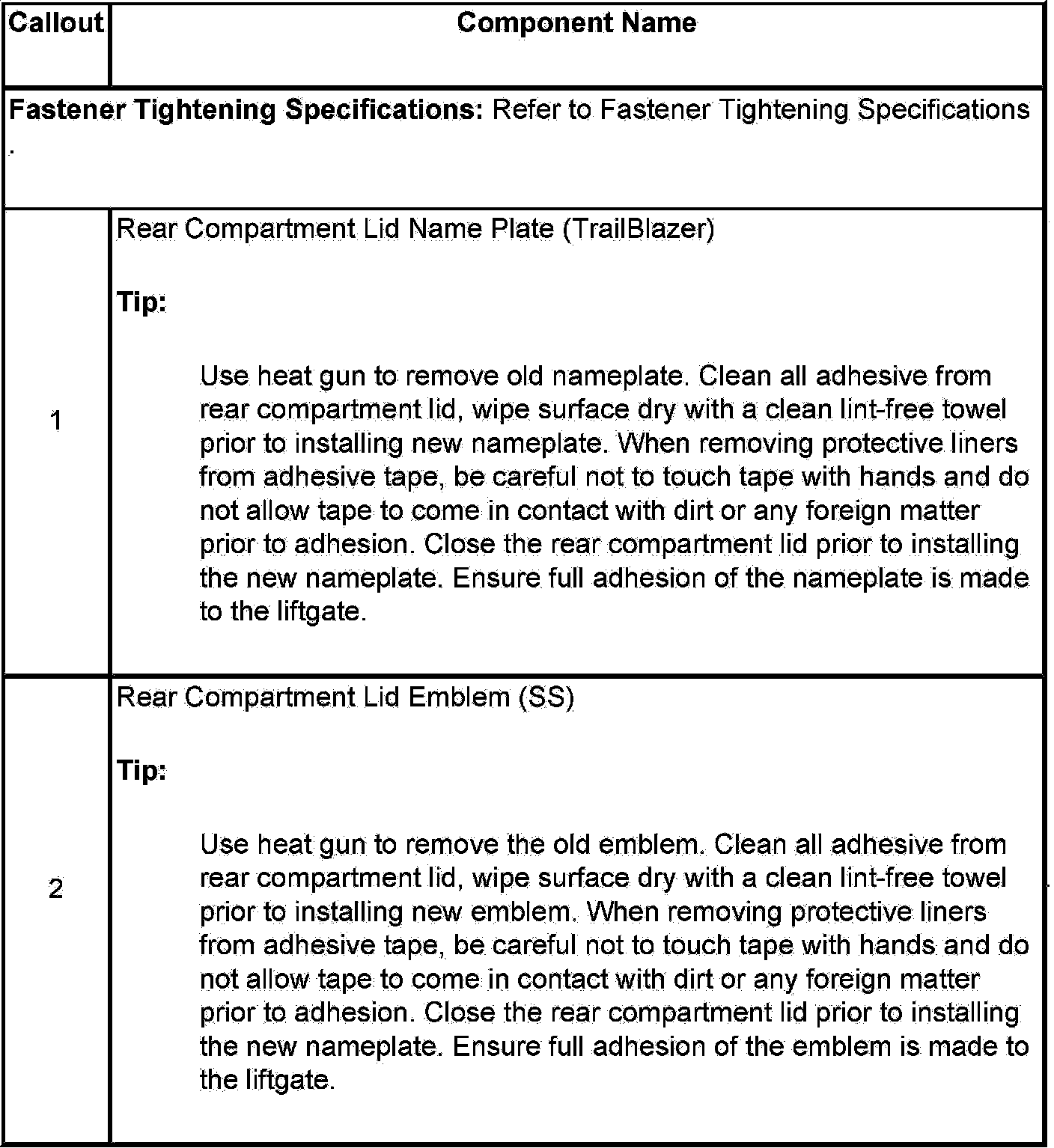 Liftgate Emblem/Nameplate Replacement (TrailBlazer SS)