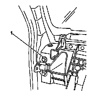 22. Remove the center bolt (1) that retains the steering column support bracket to the left cowl side carrier bracket.