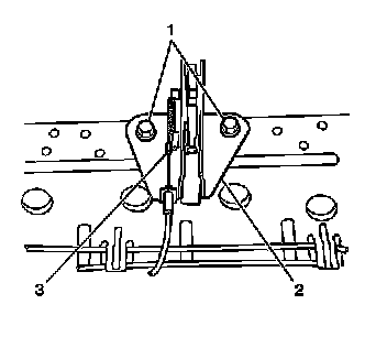 4. Remove the cable (3) from the mid-position floor latch assembly (2).