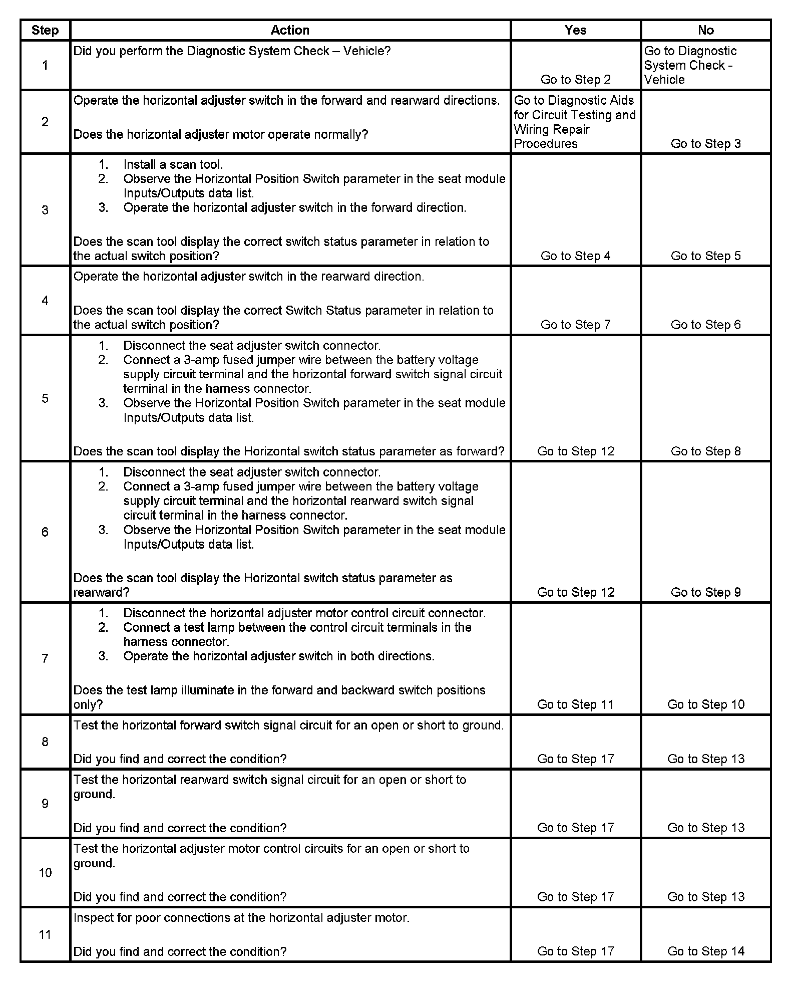 POWER SEAT DOES NOT MOVE FORWARD/REARWARD