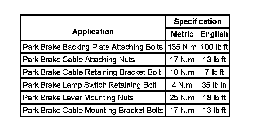 Parking Brake System: Specifications
