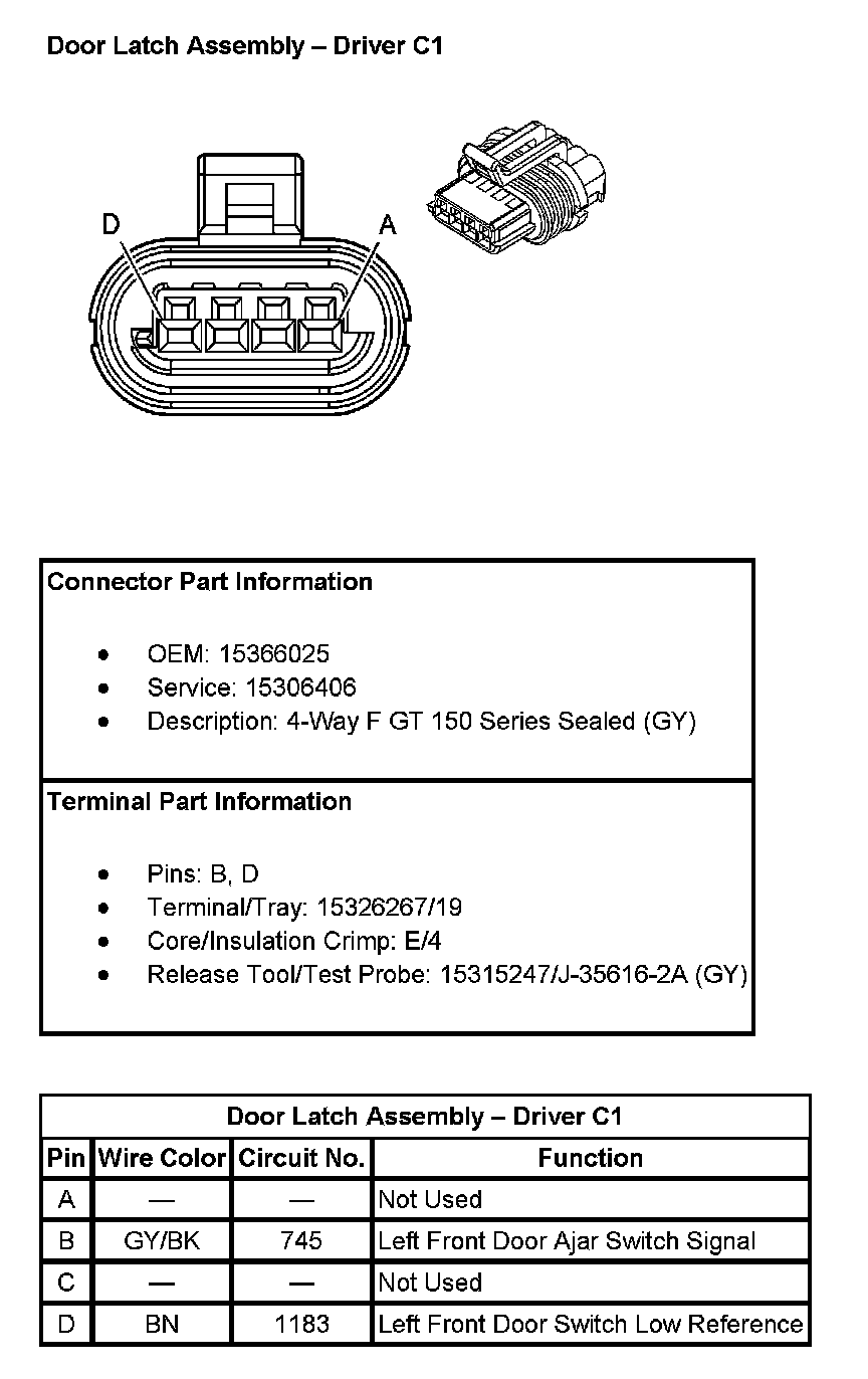 Door Latch Assembly - Driver C3 (with RPO Codes UA6/UA2):