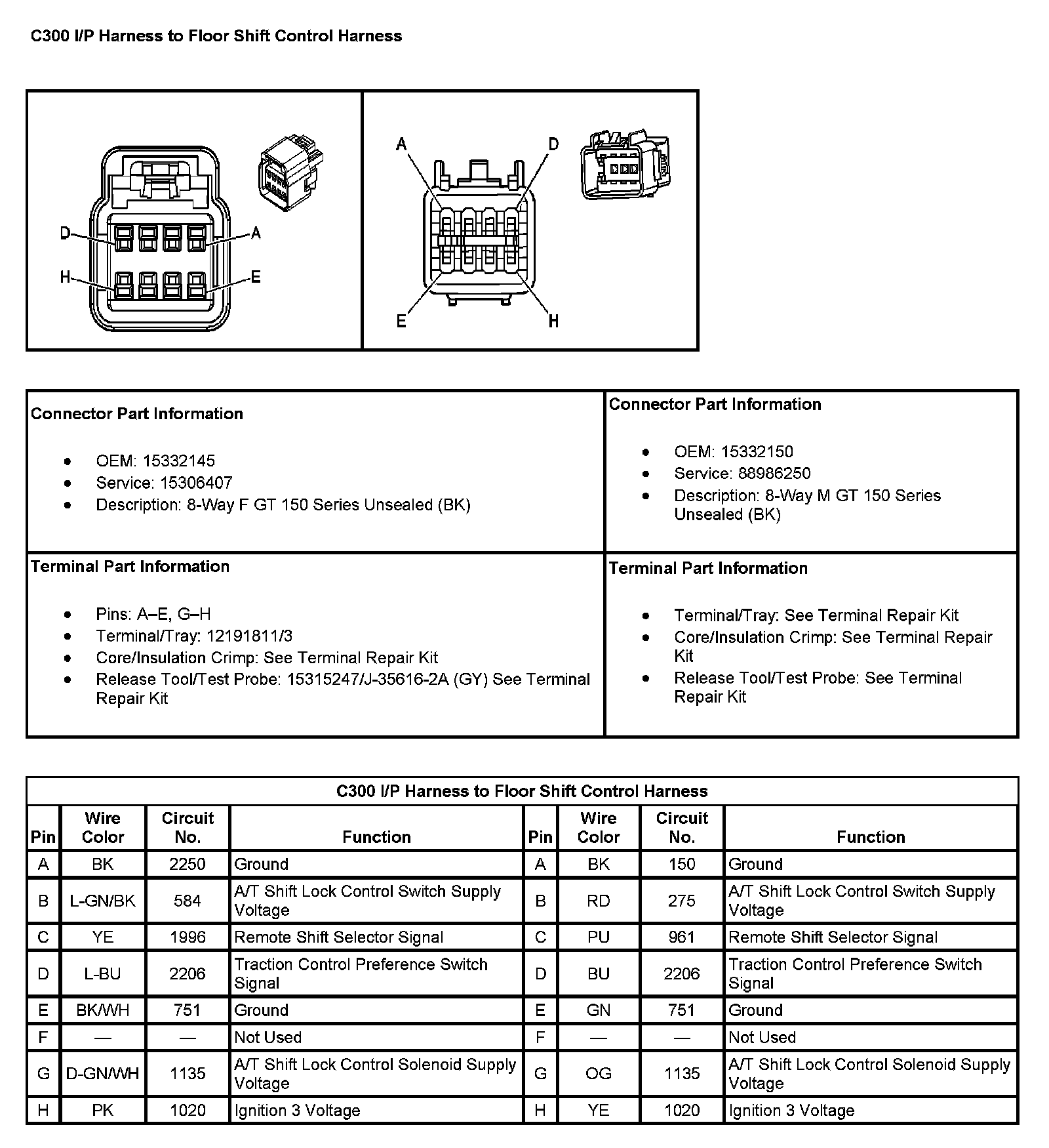 C300 I/P Harness To Floor Shift Control Harness: