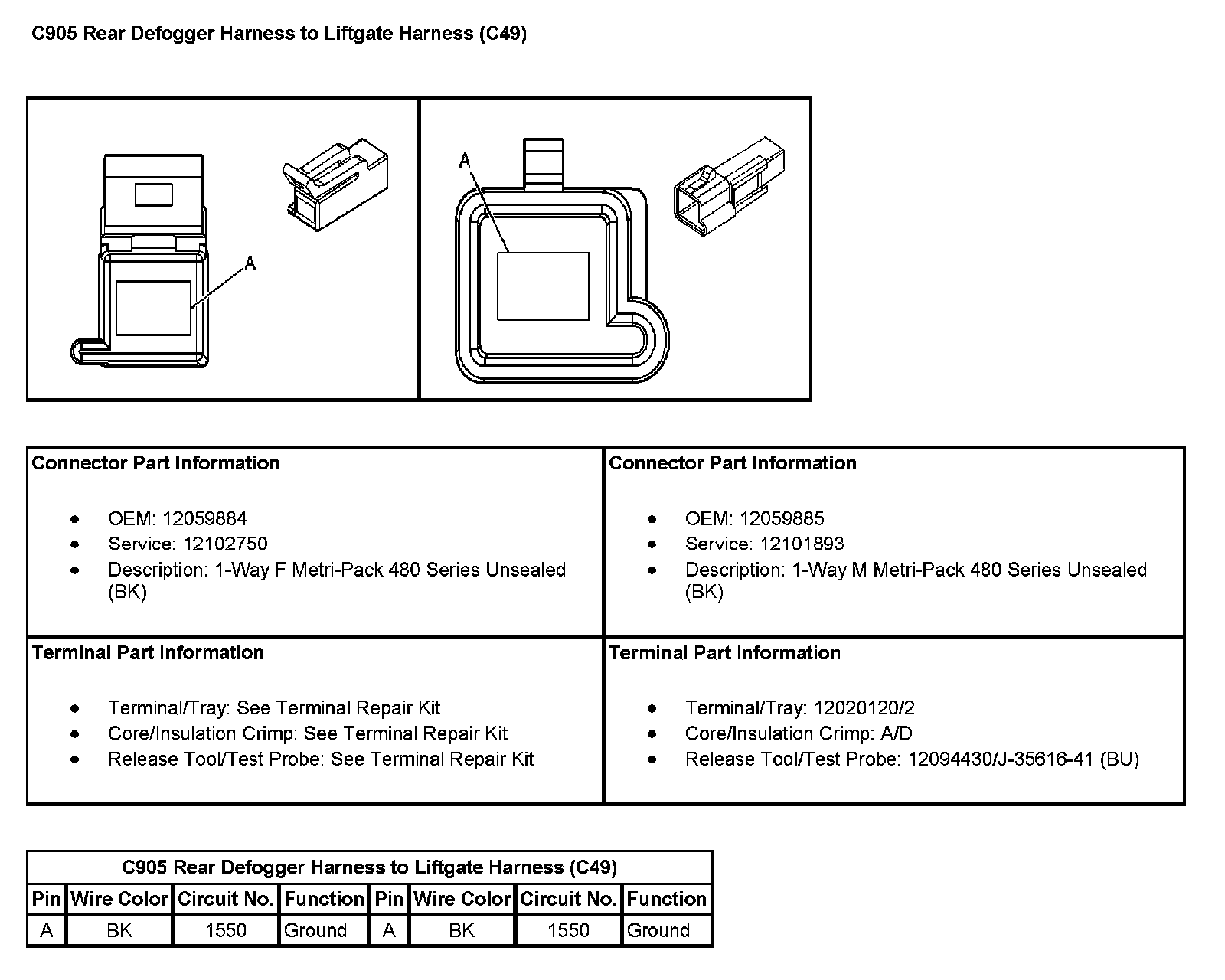 C905 Rear Defogger Harness To Liftgate Harness (With RPO Code C49):
