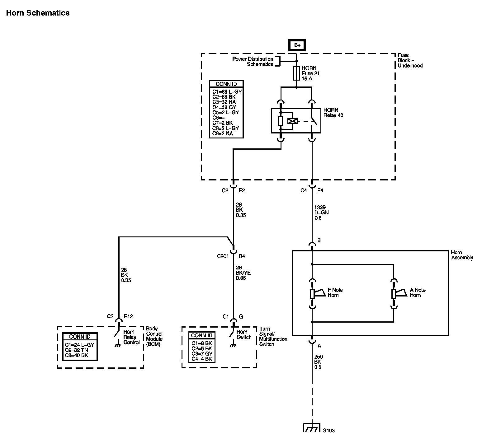 The locations for the Connectors, Grounds, Splices, and Grommets shown within these diagrams can be found via their numbers at Vehicle Locations.