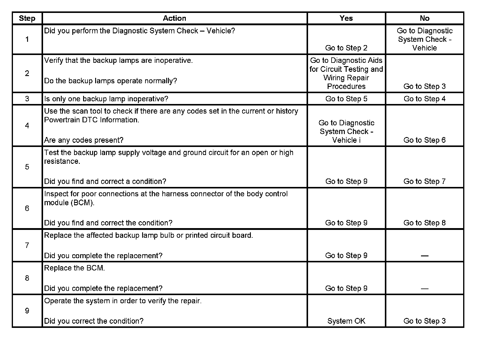 Backup Lamps Inoperative