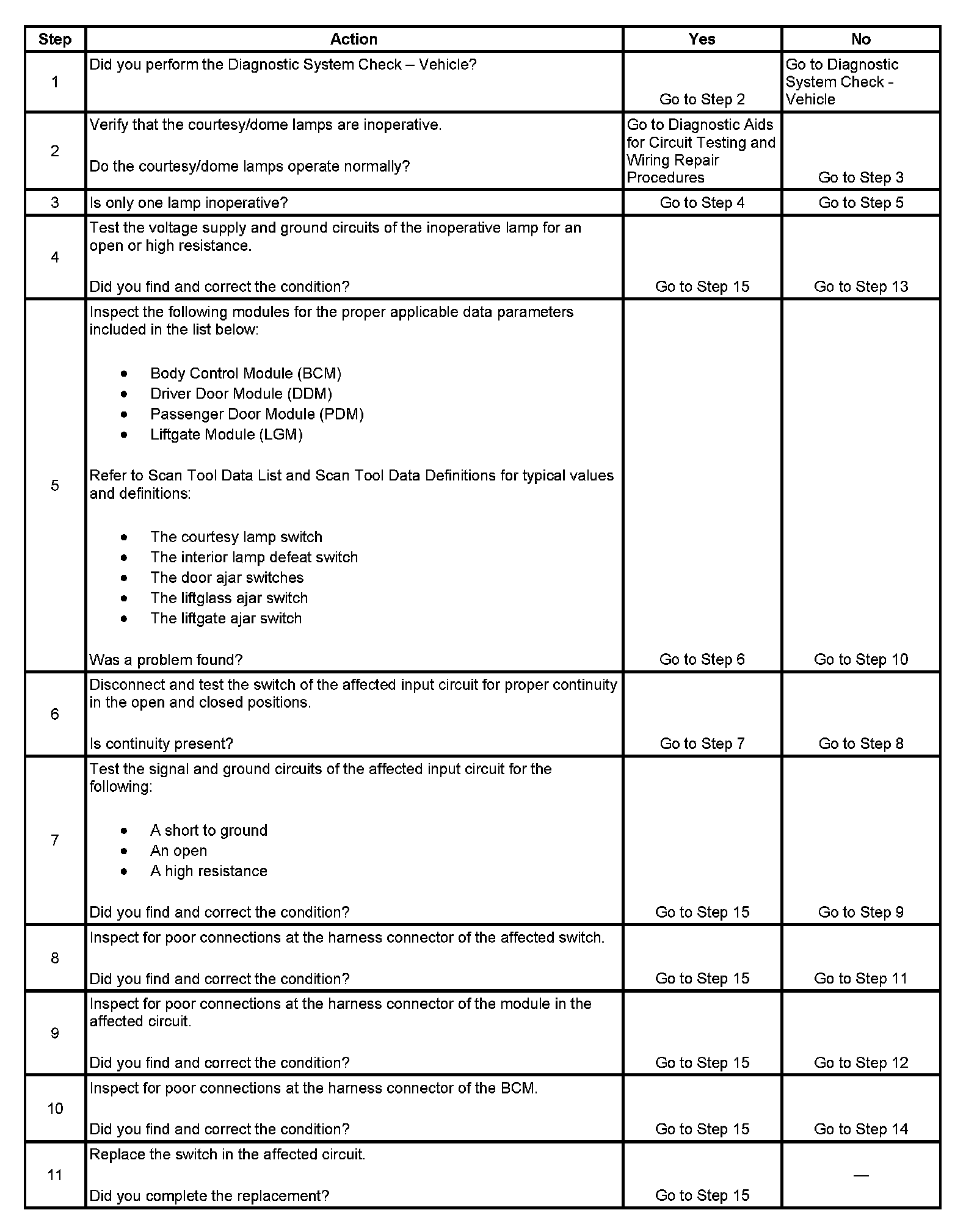 Courtesy Lamps Inoperative