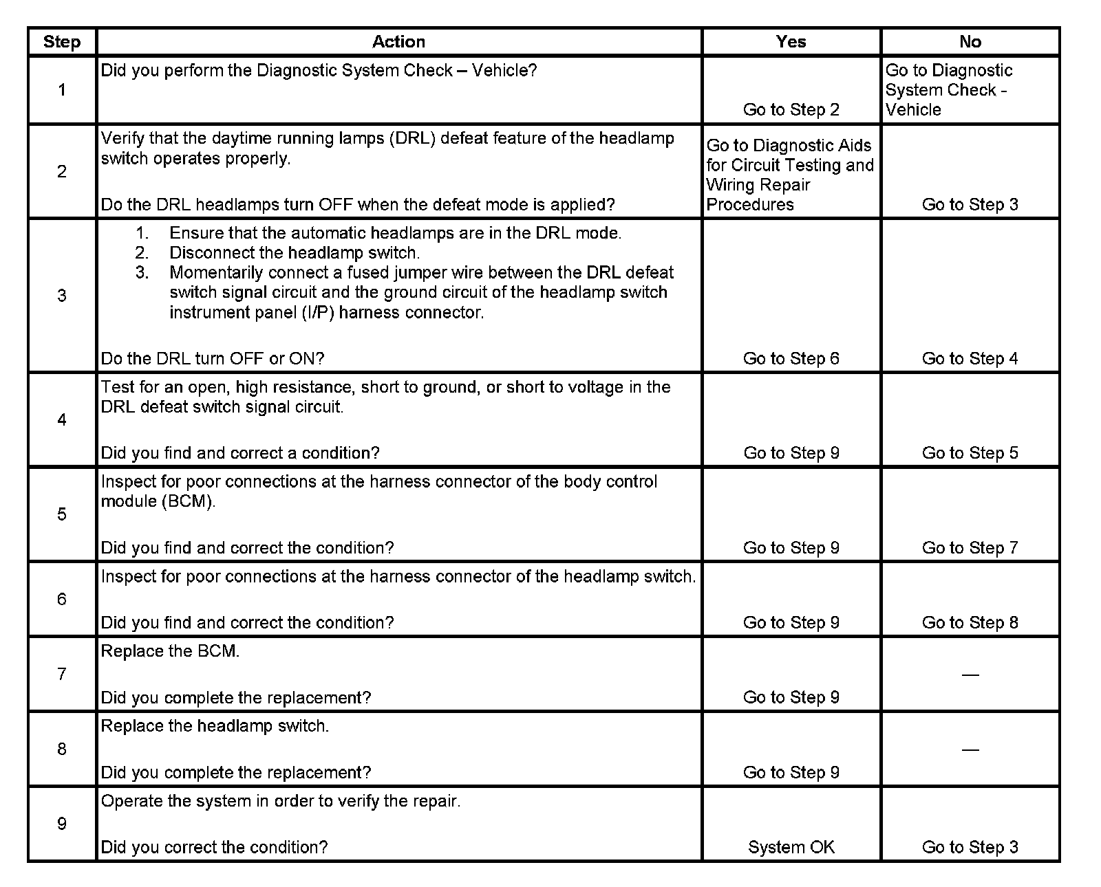 Daytime Running Lamps (DRL) Defeat Inoperative
