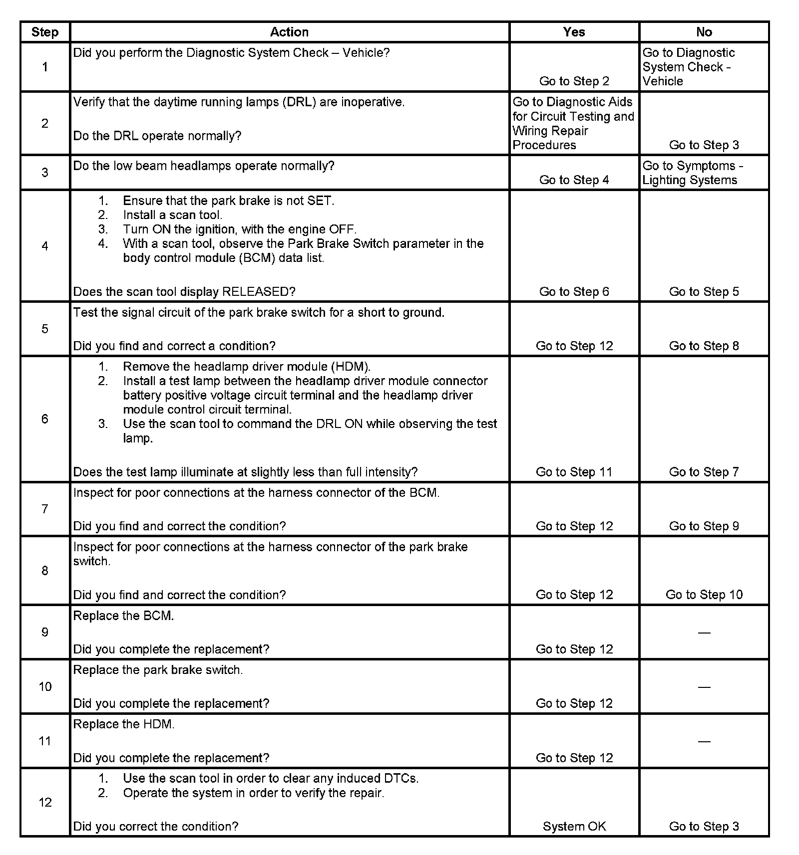 Daytime Running Lamps (DRL) Inoperative