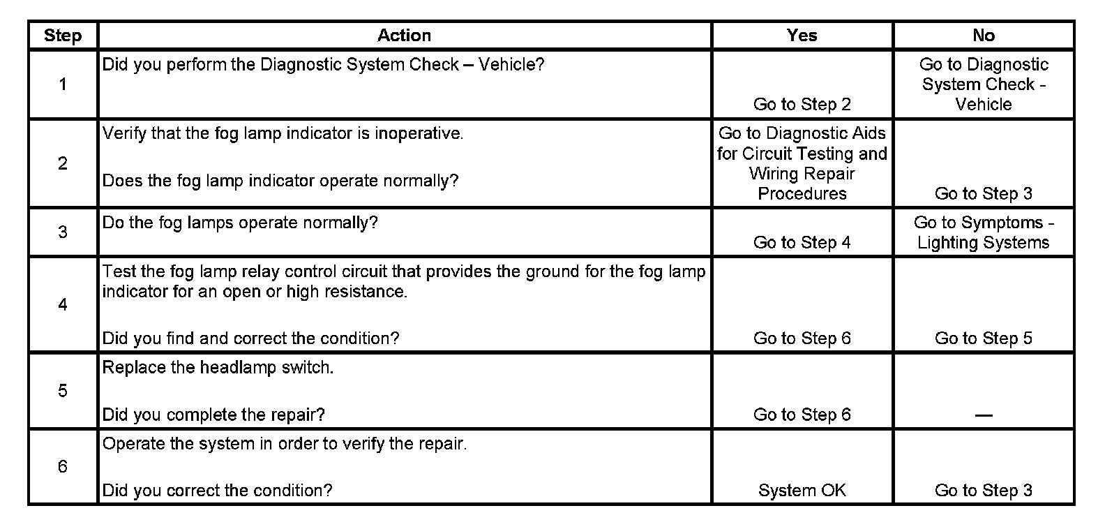 Fog Lamp Indicator Inoperative