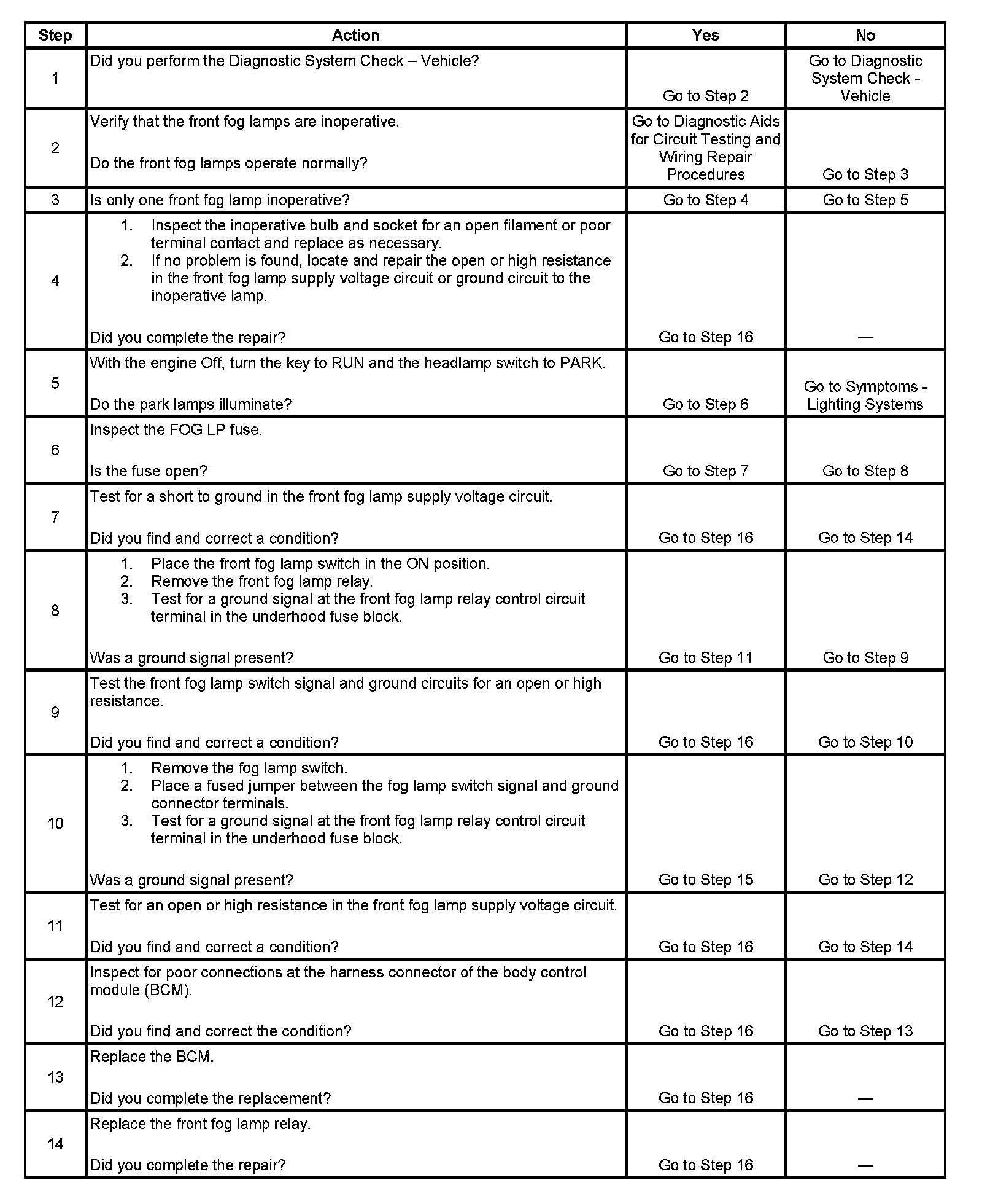 Fog Lamps Inoperative