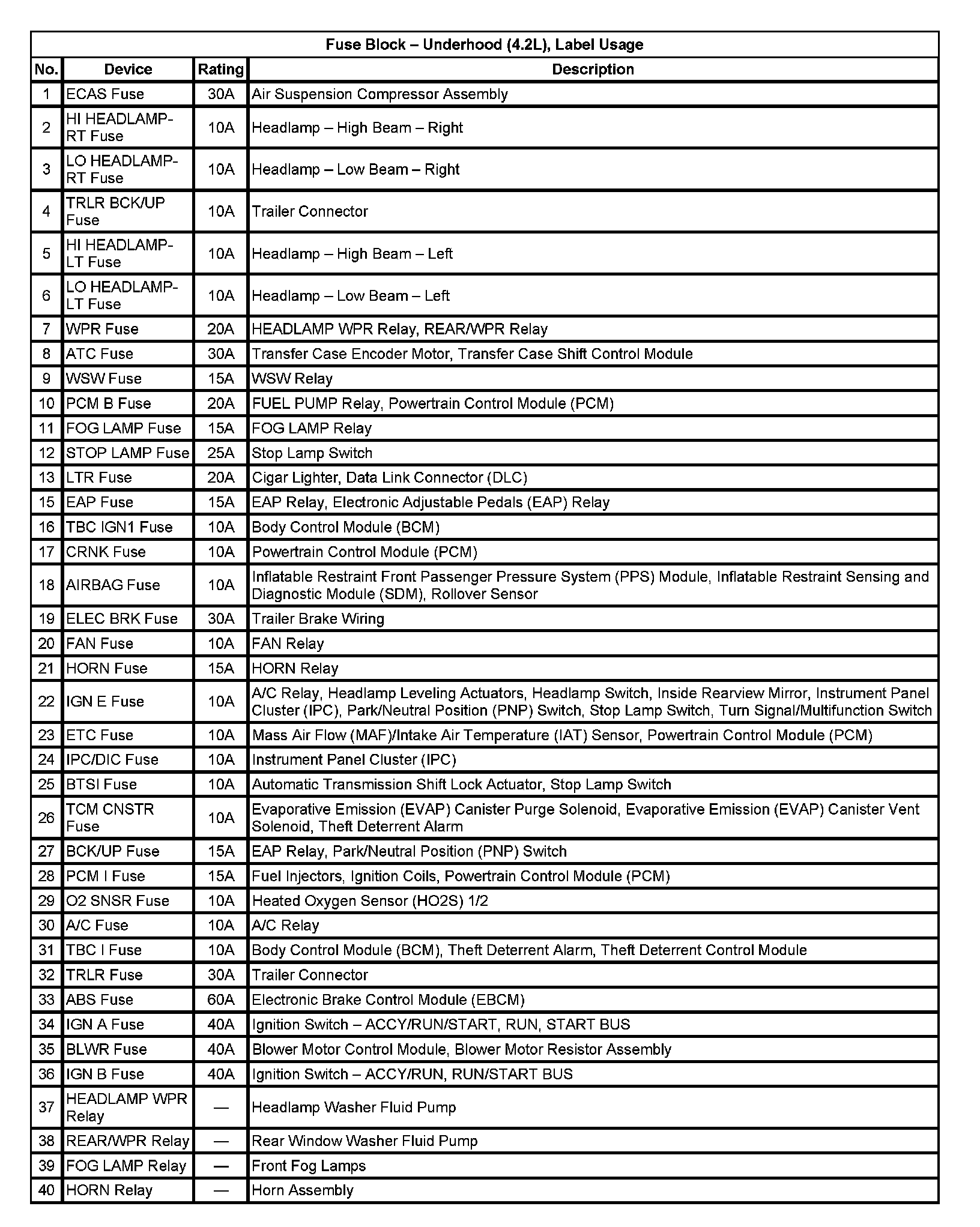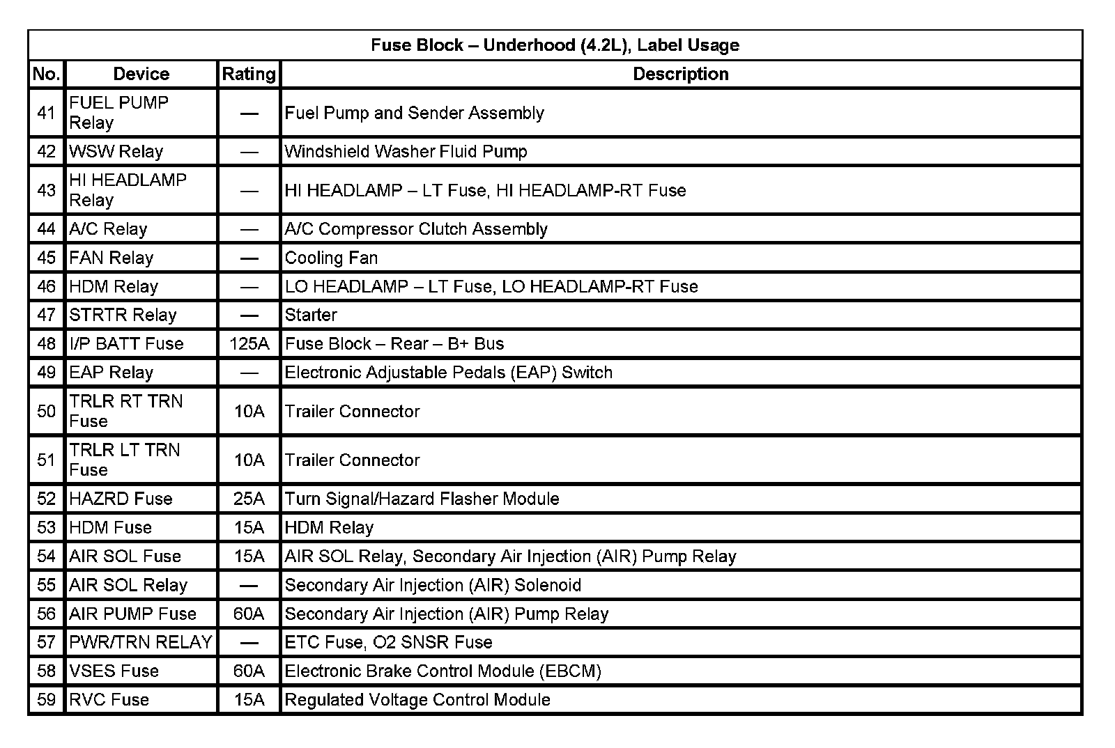 Fuse Block - Underhood (4.2L), Label Usage:
