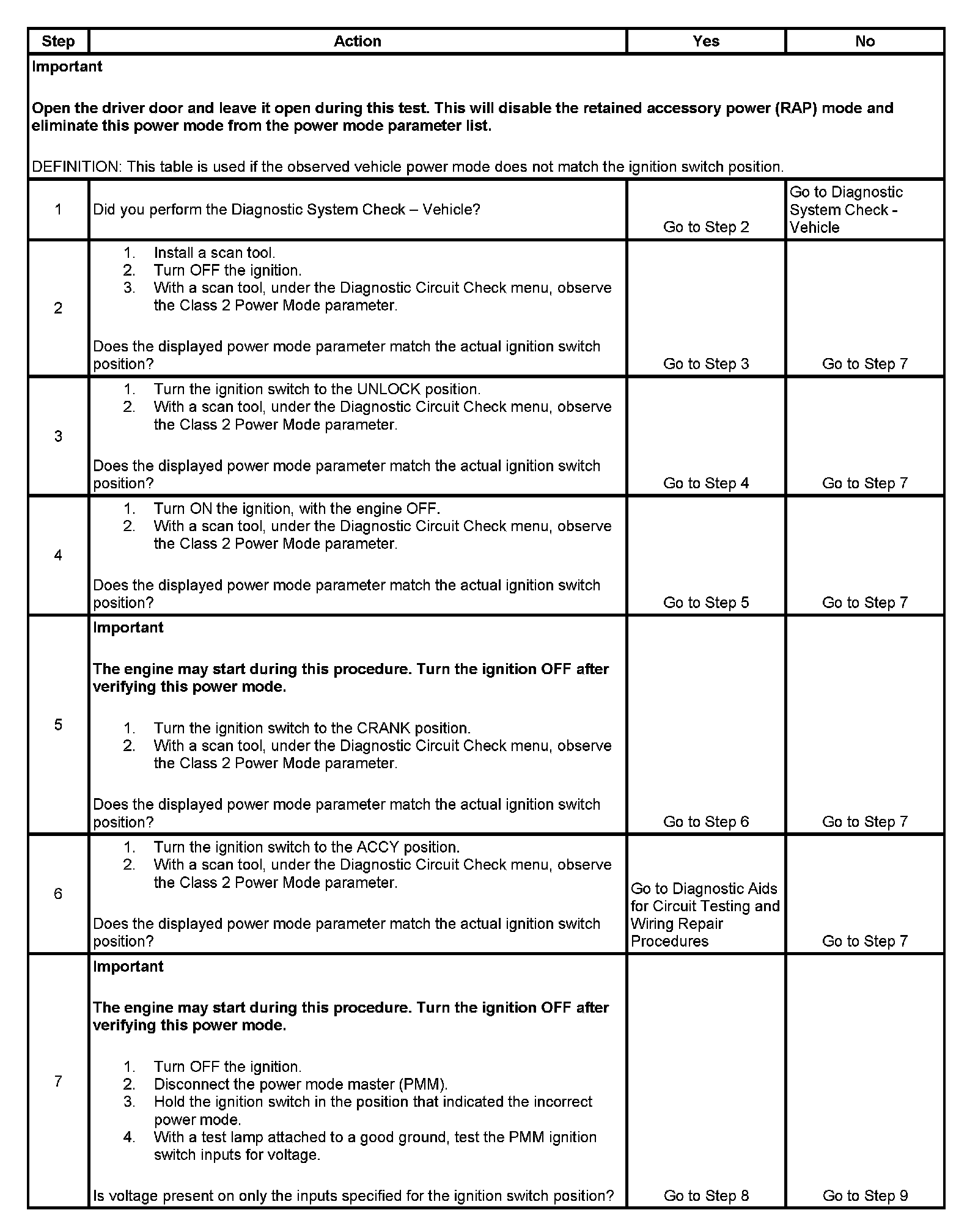 7. This step tests for battery voltage on the signal circuits that are not required.