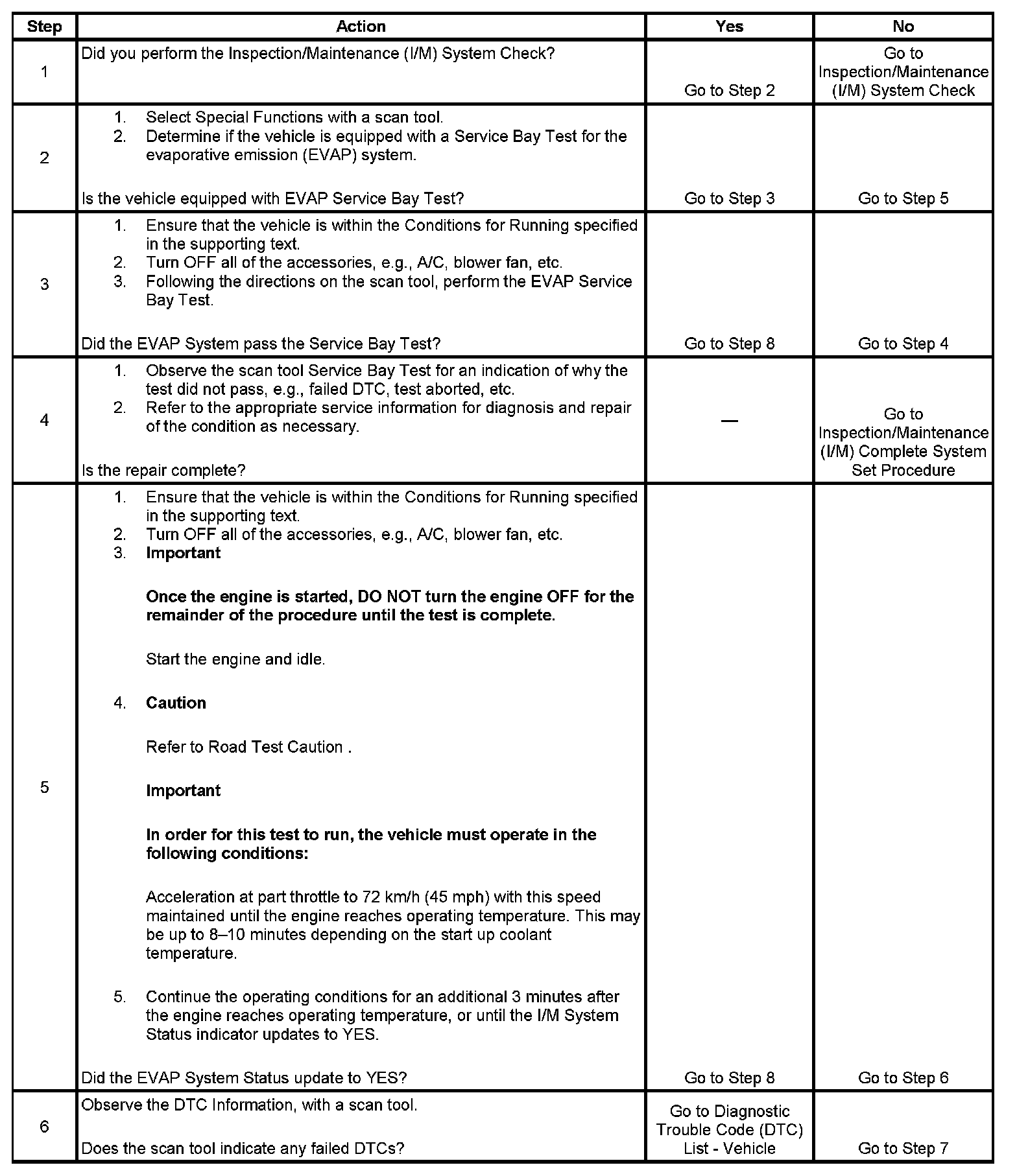 The first failure of a type B DTC does not constitute a final determination of pass or fail, and will not update the I/M System Status to YES. A second trip is required, and all the conditions to run must be met in order for the test to run again. These conditions may include a partial to complete engine cool down.