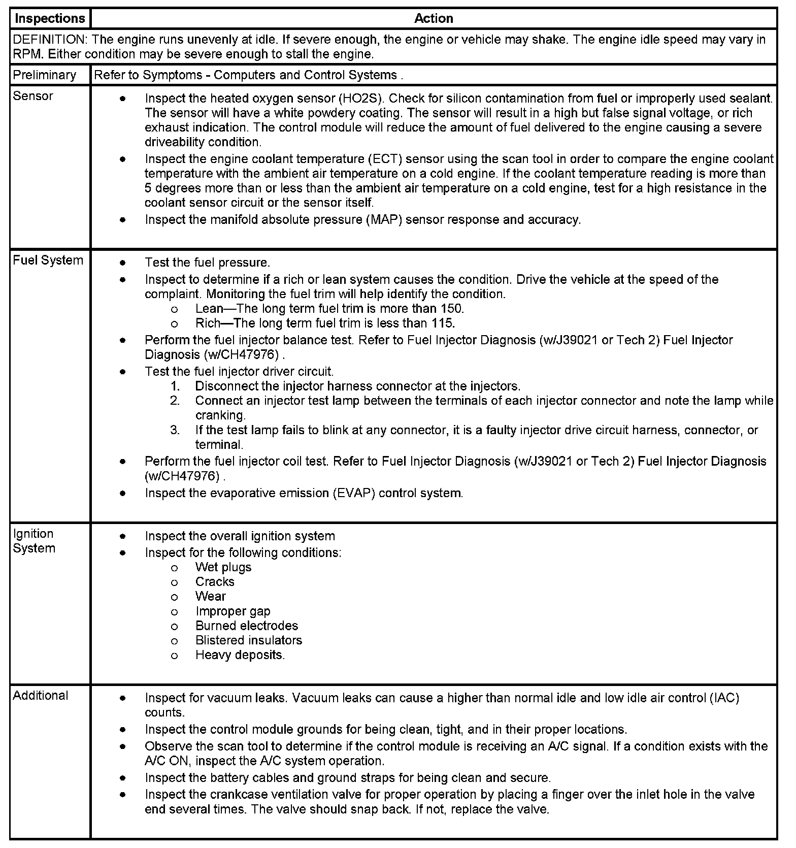 Rough, Unstable, or Incorrect Idle and Stalling