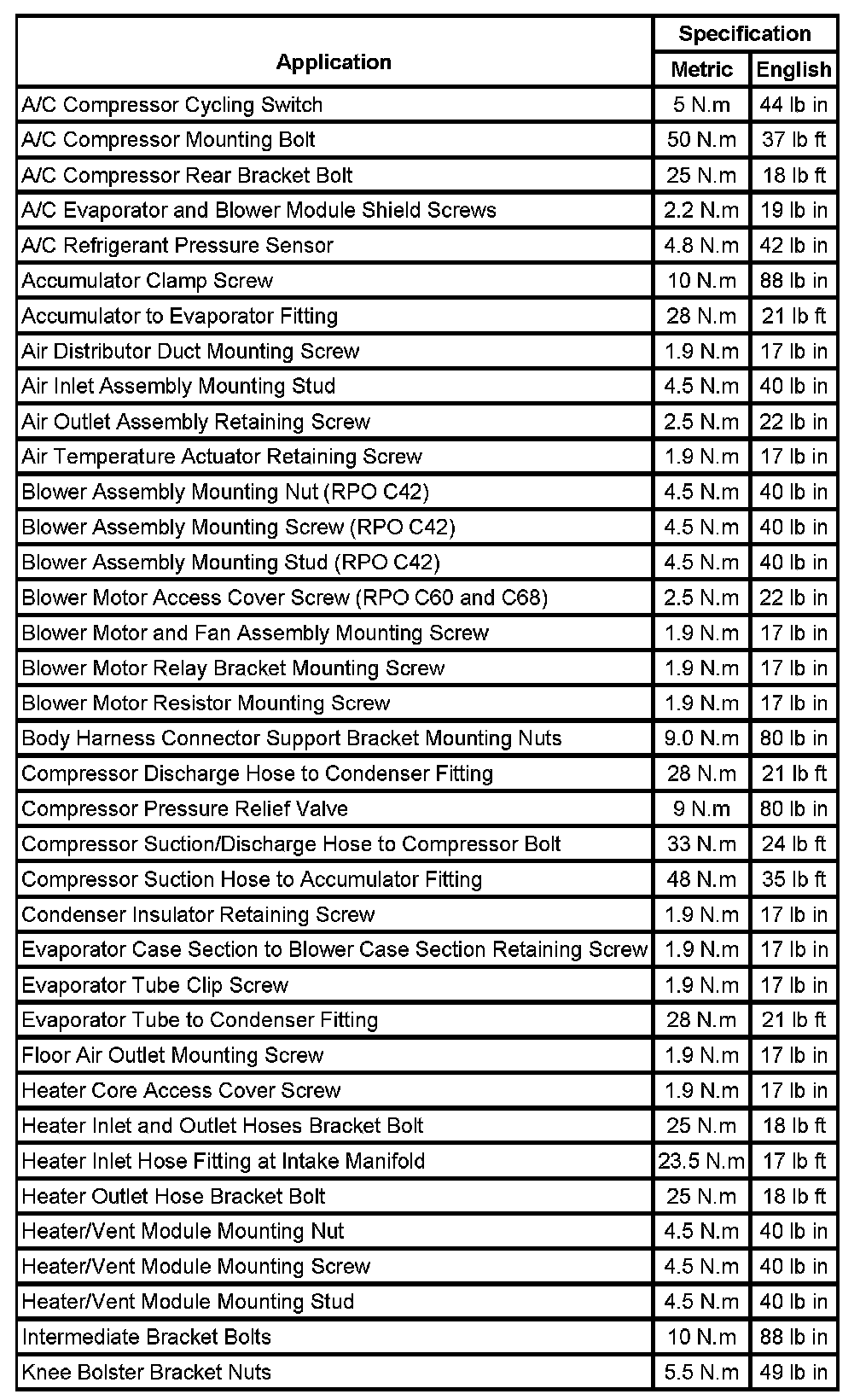 Fastener Tightening Specifications