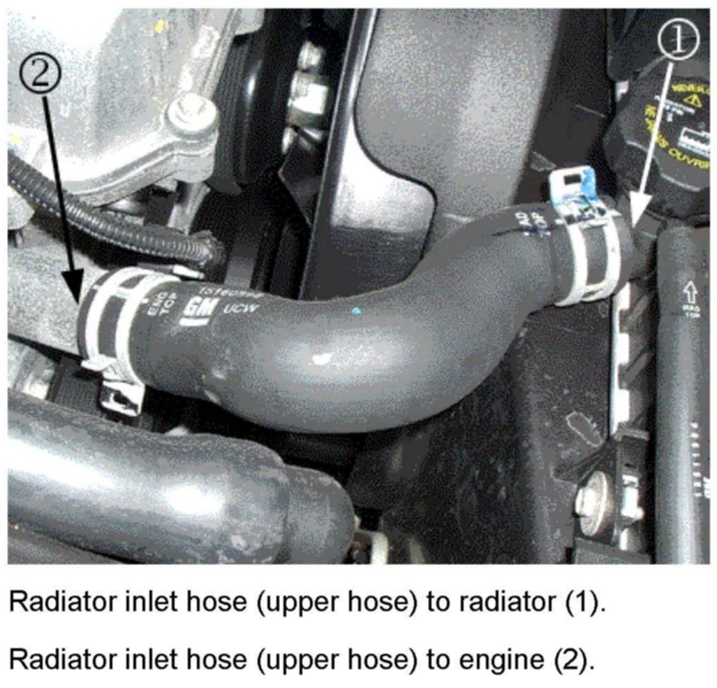 2. Radiator inlet hose (upper hose) to engine (2).