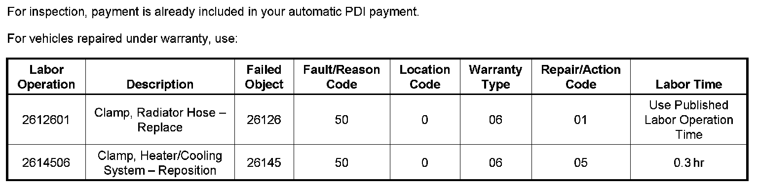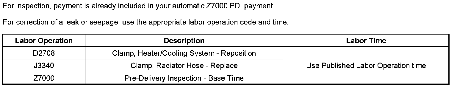 The purpose of this bulletin is to inform dealers of required inspection of underhood and under vehicle radiator and heater hose clamps and seals for leaks and/or seepage during pre-delivery inspection (PDI).