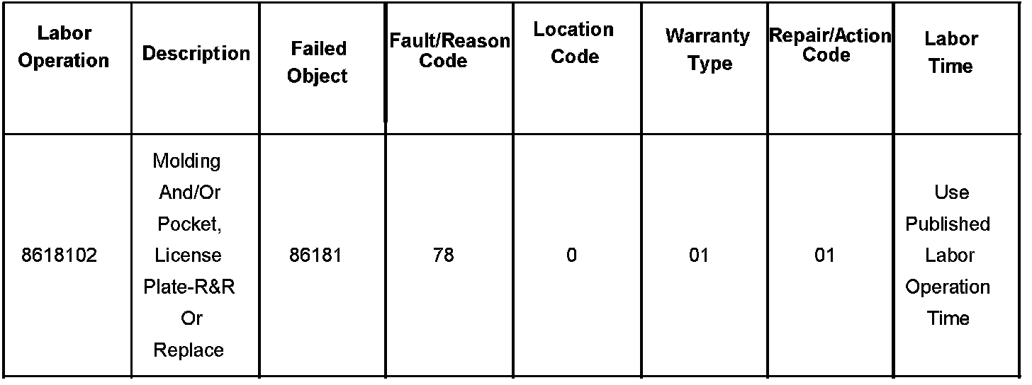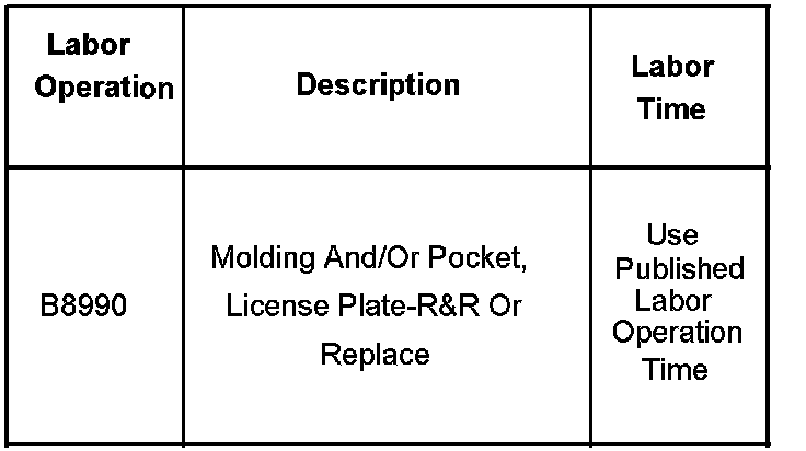 Install the license plate pocket assembly onto the liftgate. Refer to the License Plate Pocket Replacement procedure in the Body Rear End (2006 MY and prior) or Exterior Trim sub-section of SI. Modify the tightening sequence for the screws that retain the pocket assembly to the liftgate as follows: