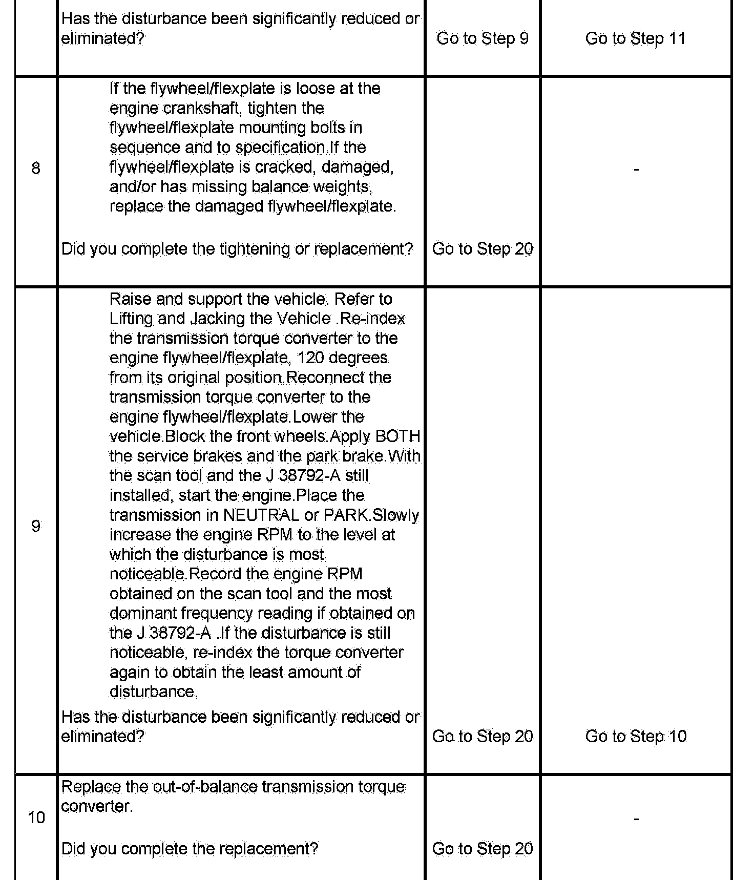9. Re-indexing the transmission torque converter to the engine flywheel/flexplate alters the balance relationship between the torque converter and the rear of the engine.
