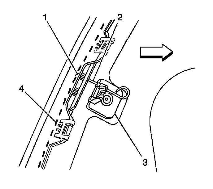 4. Ensure the window latch bracket (3) is pinned (1) the window frame (4).