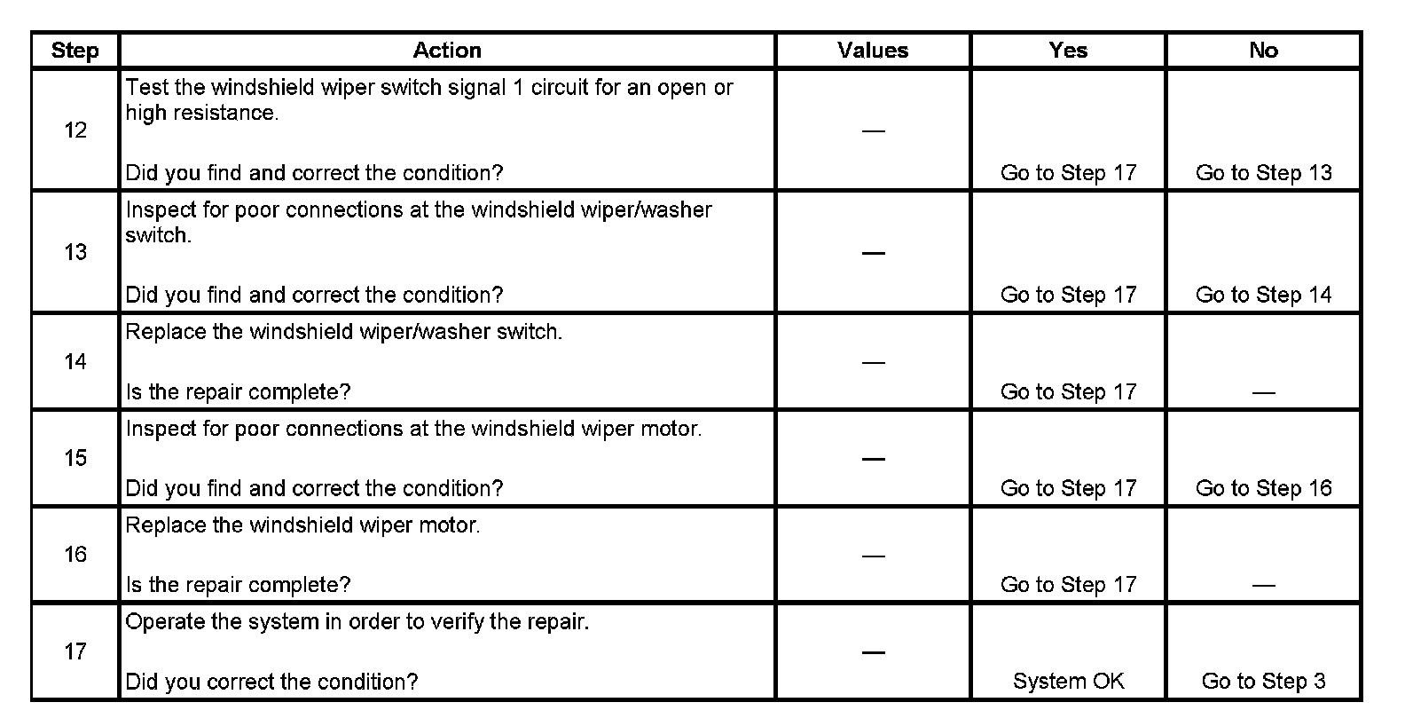 5. This step tests for continuity through the 380 ohms resistor in the windshield wiper/washer switch.