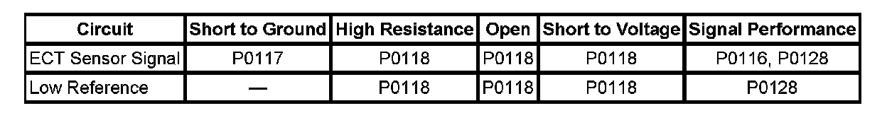 5. If all circuits test normal, test or replace the ECT sensor.