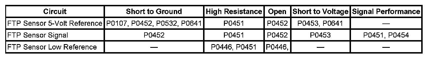- Fuel Tank Pressure (FTP) Sensor Circuit High Voltage