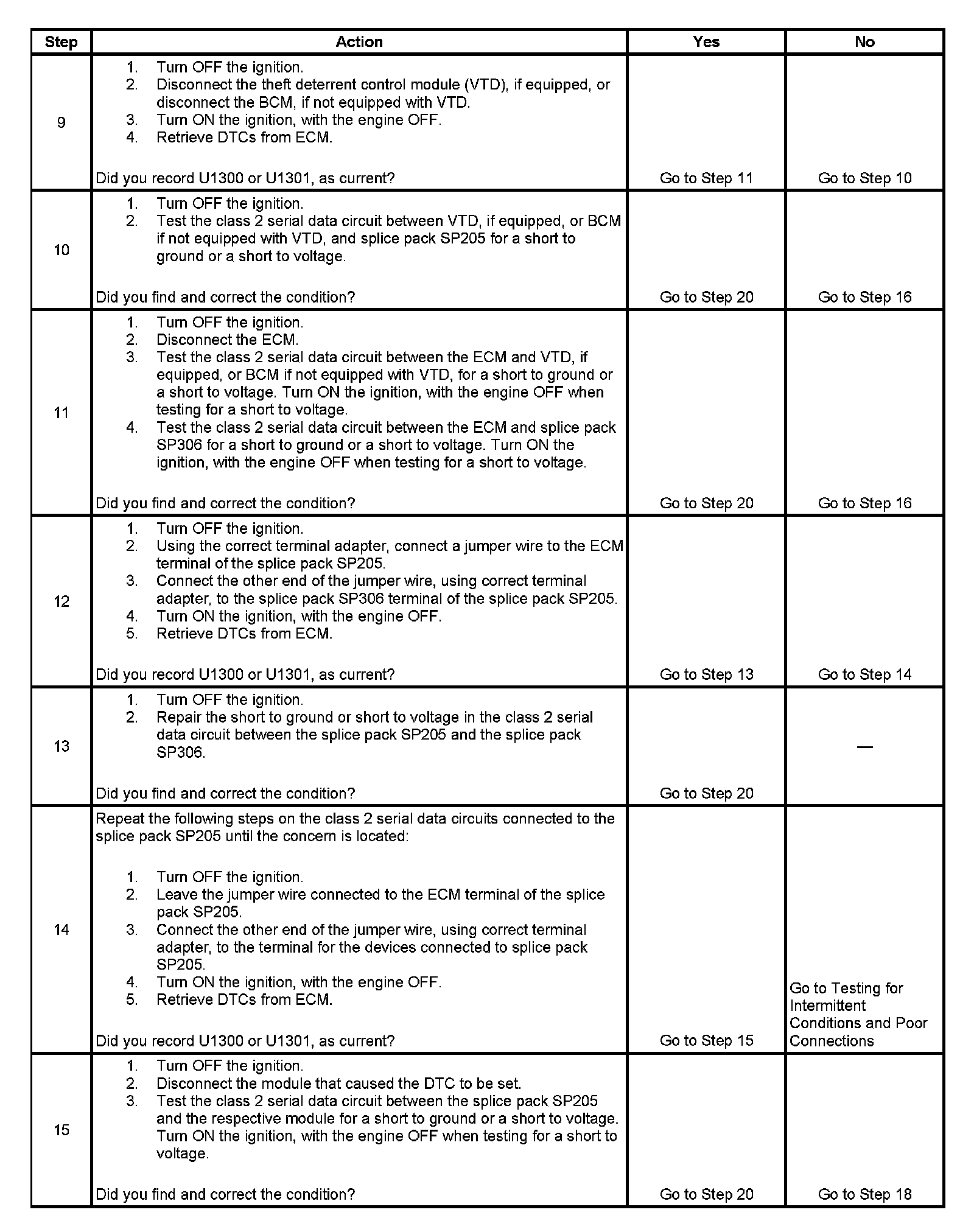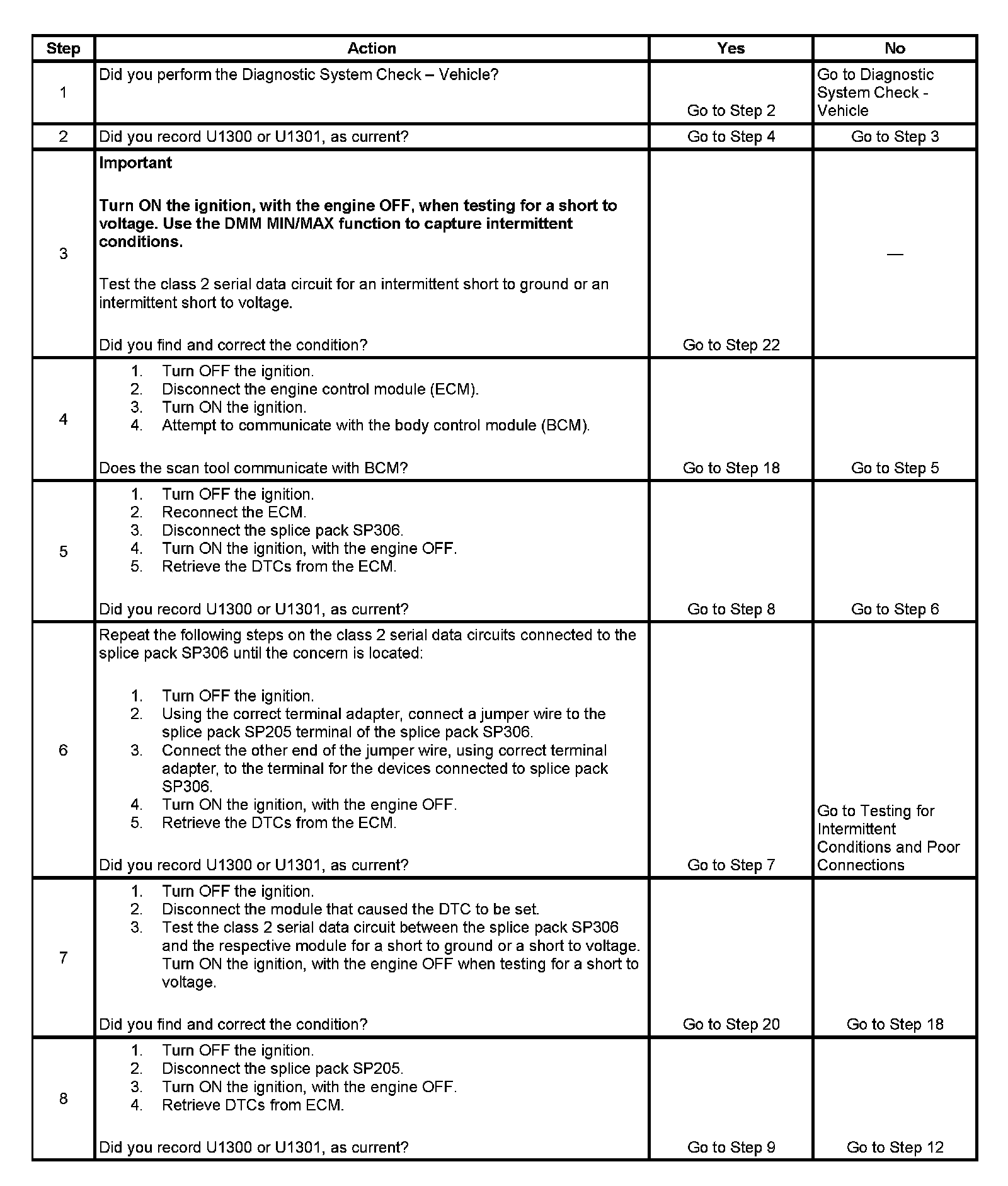 6. The class 2 serial data circuit is shorted to voltage or ground. The condition may be due to the wiring or due to a malfunction in one of the modules. When testing the wire for a short, make sure there is not a module connected to the wire being tested. This test isolates the splice pack SP306 serial data circuits.