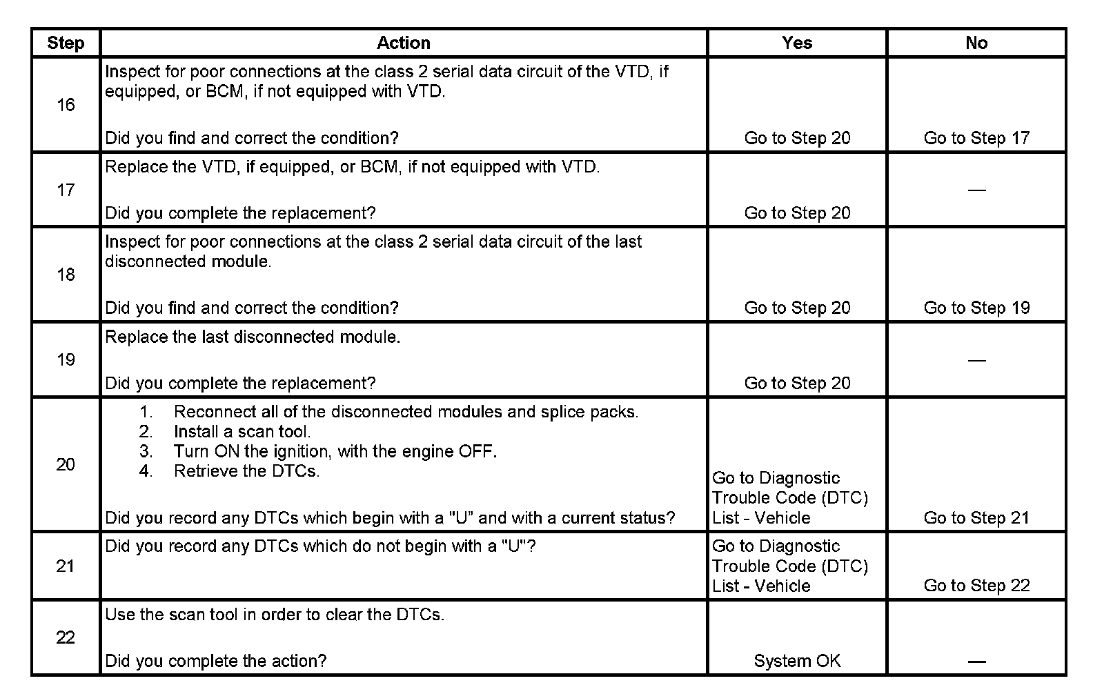 20. If there are no current DTCs that begin with a "U", the communication malfunction has been repaired.