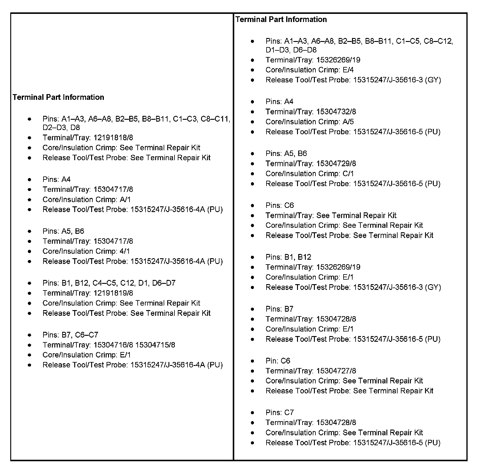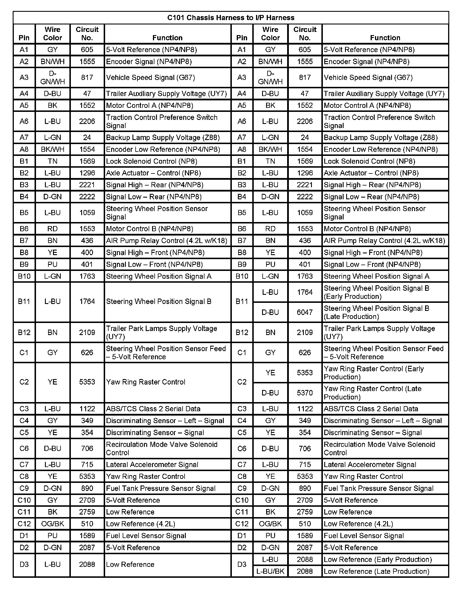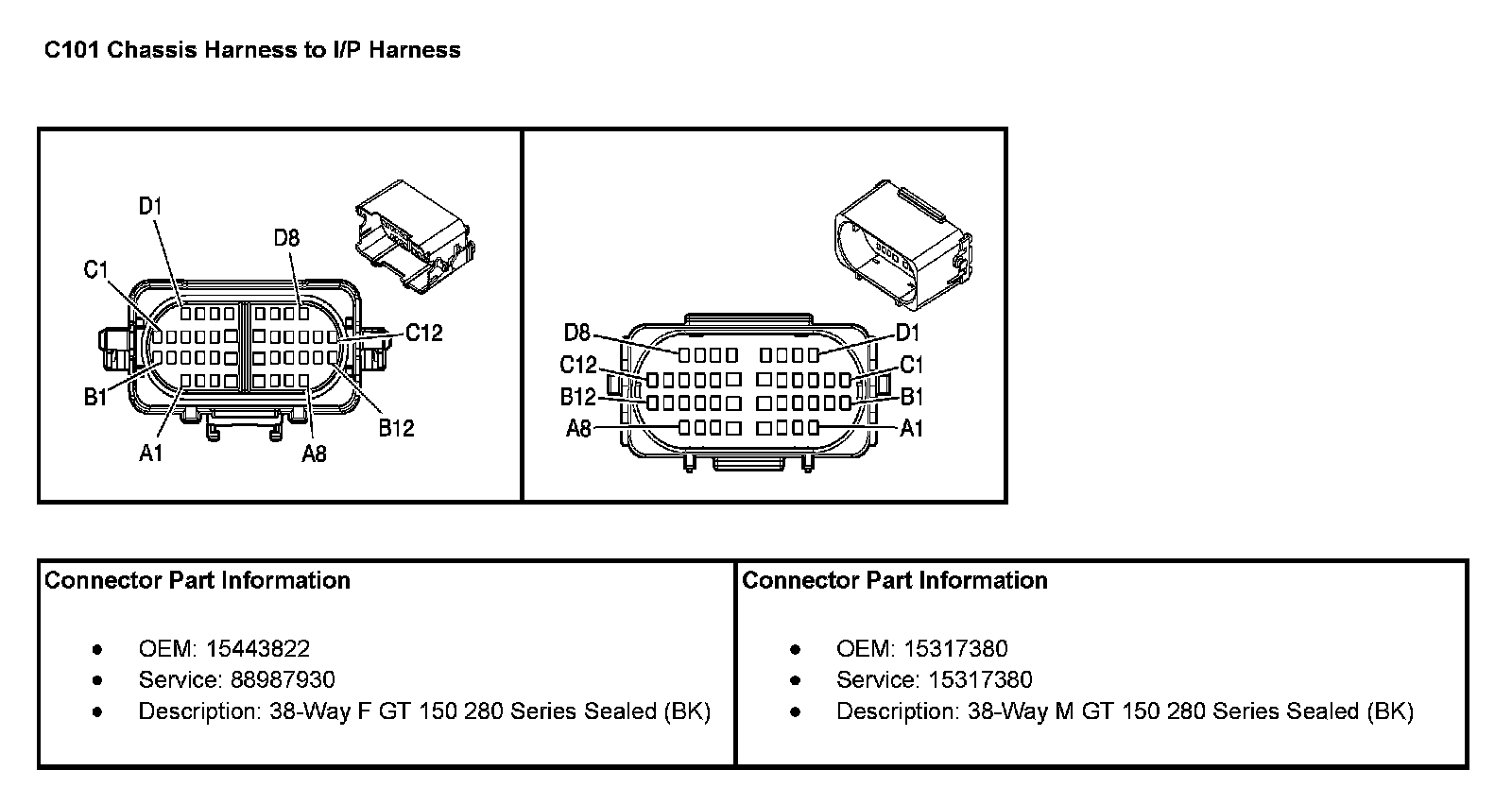 C101 Chassis Harness To I/P Harness (Pin A1 To D3):