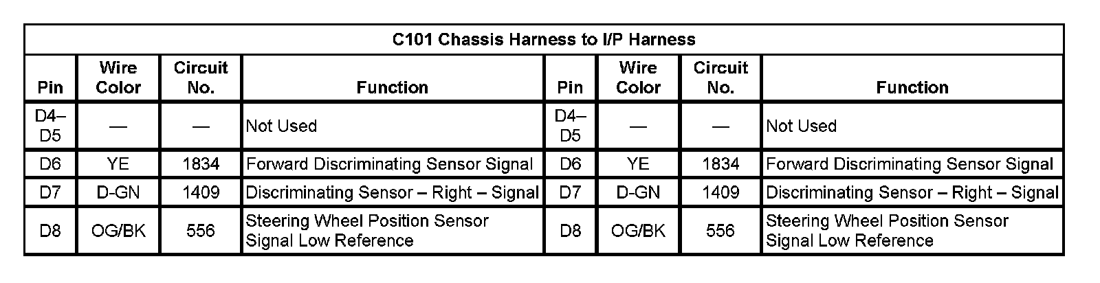 C101 Chassis Harness To I/P Harness (Pin D4 To D8):