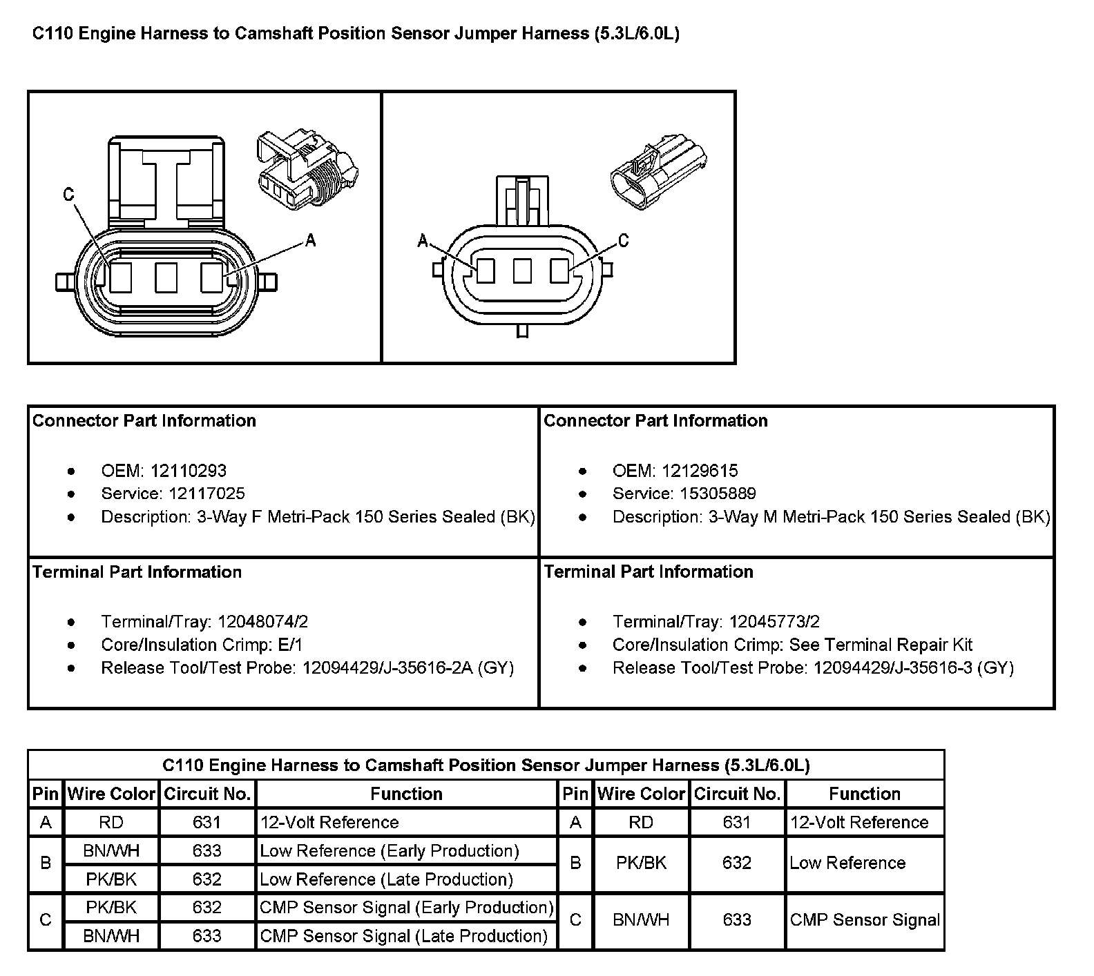 C110 Engine Harness To Camshaft Position Sensor Jumper Harness (5.3L/6.0L):