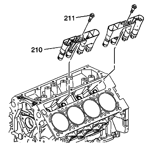2. Install the valve lifters and guide assembly (210) to the engine block.