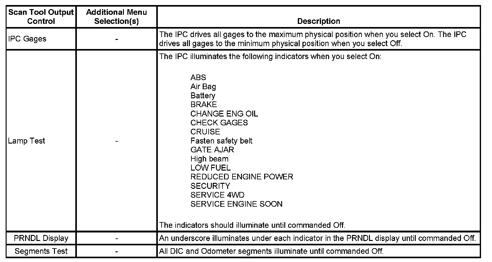 Scan Tool Output Controls
