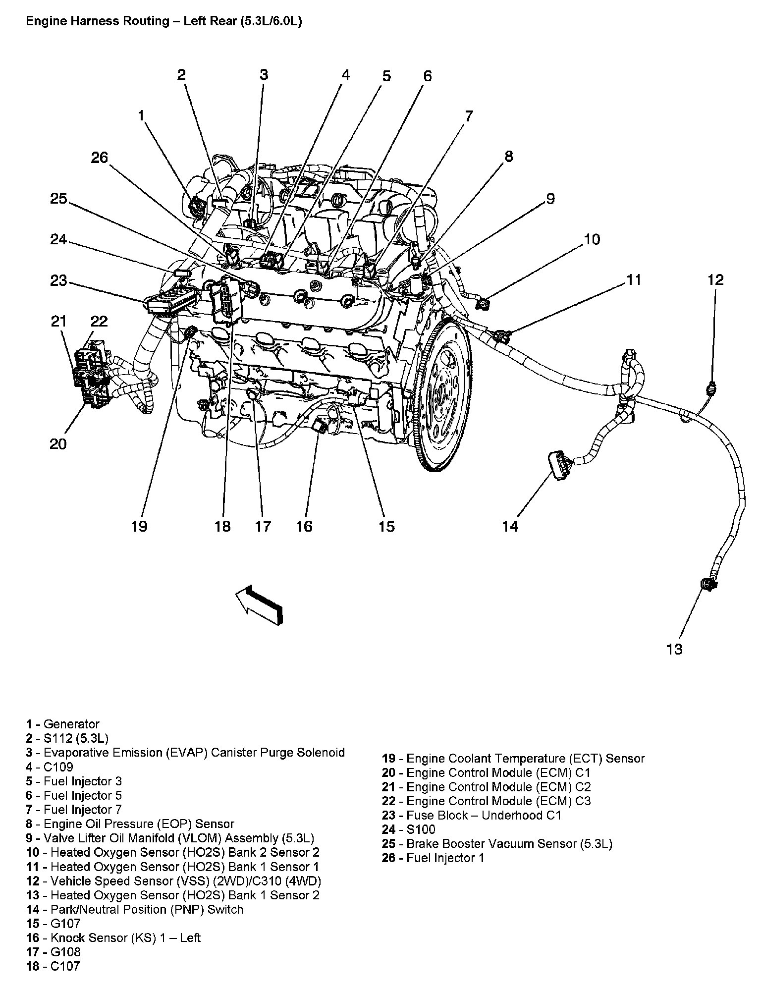 Engine Harness Routing - Left Rear (5.3L/6.0L):