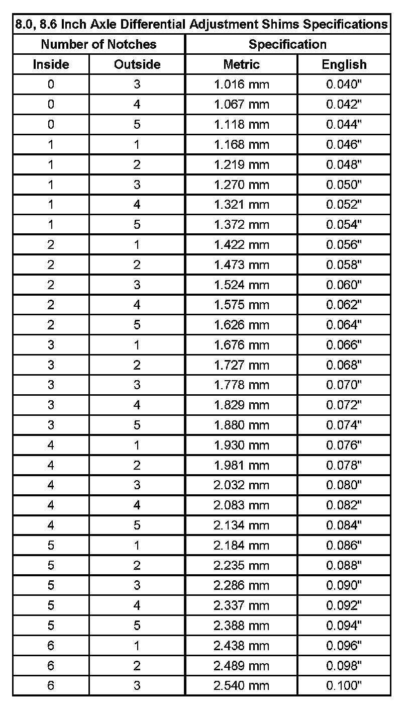 Differential Adjustment Shim Specifications