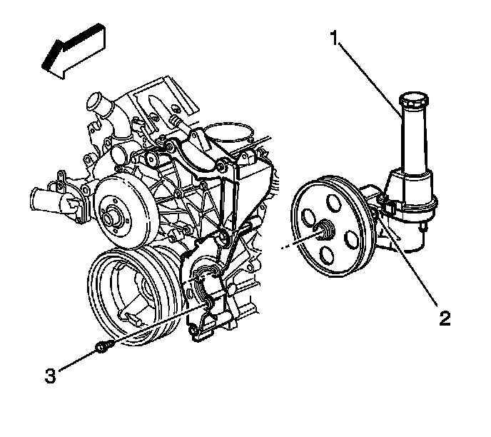 5. Remove the power steering pump mounting bolts (3).