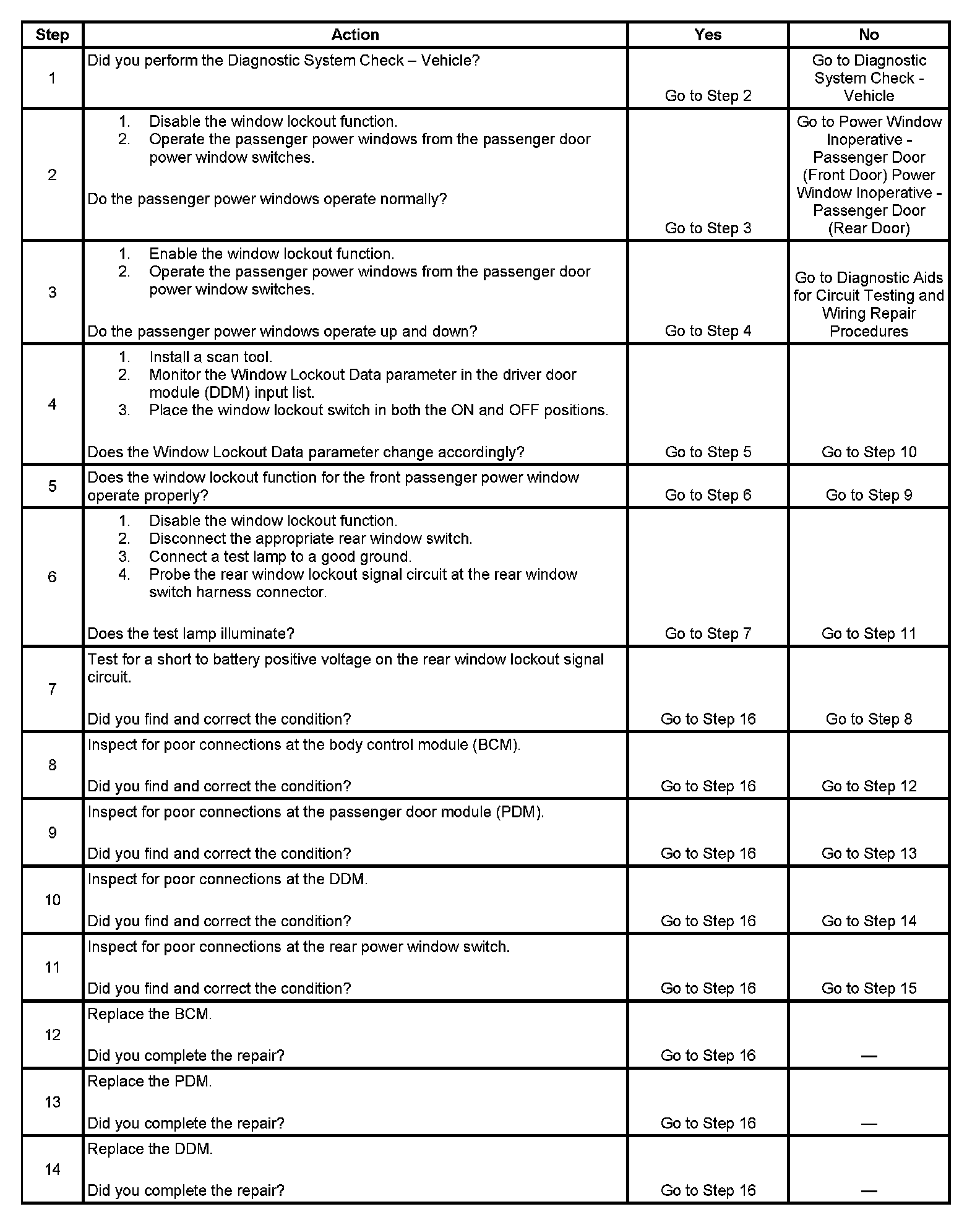 POWER WINDOW LOCKOUT FUNCTION INOPERATIVE