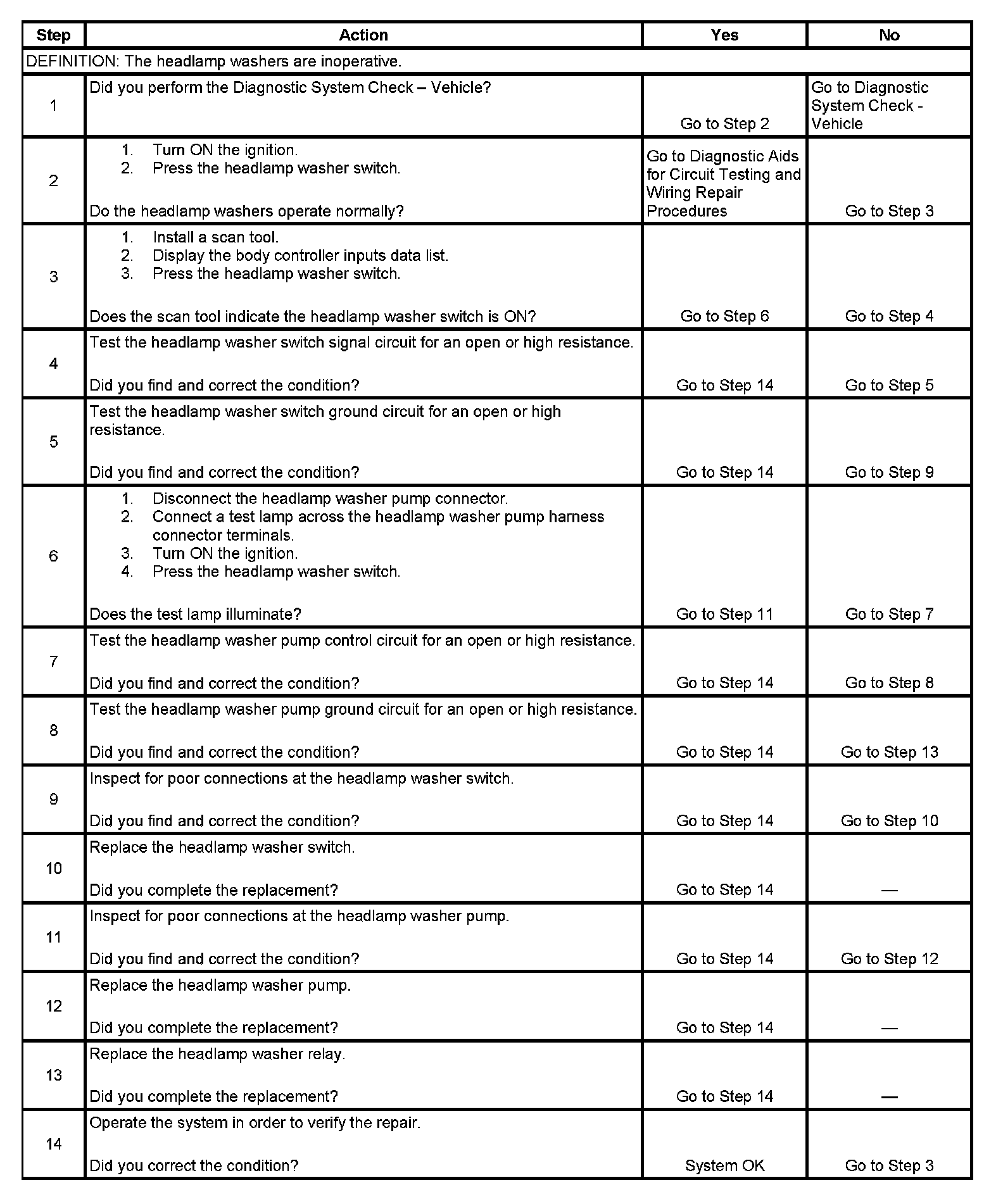 Headlamp Washers Inoperative