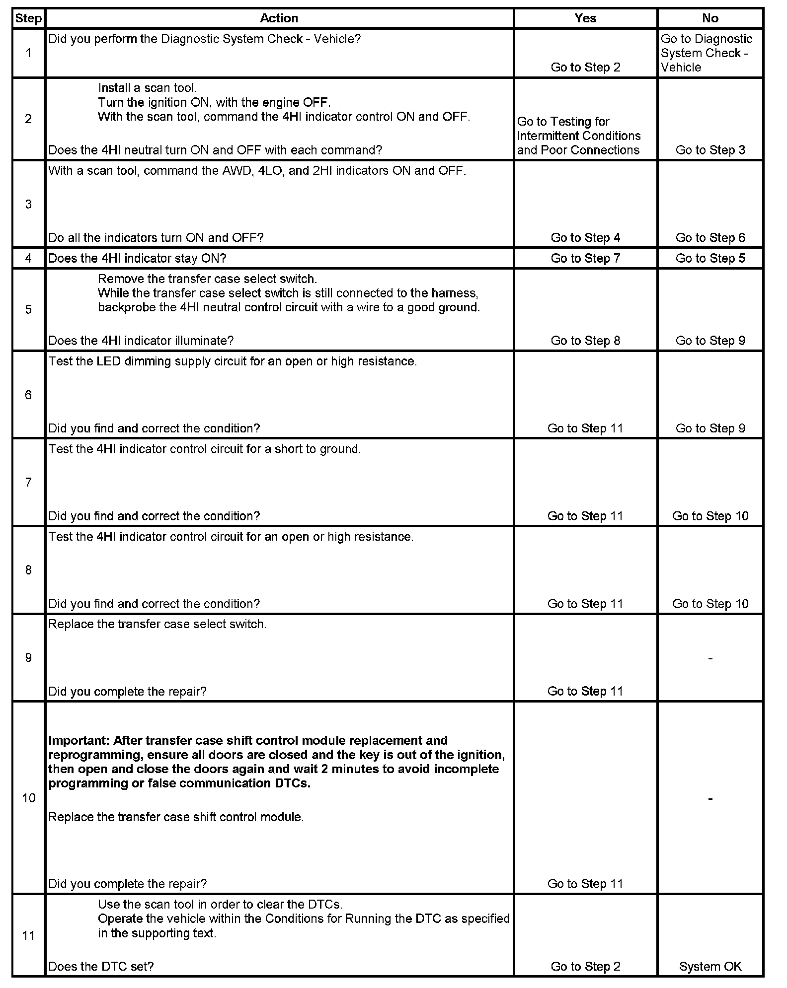 ^ If the system detects a voltage of 4.5 volts or greater when the 4HI indicator is commanded, the DTC is logged.
