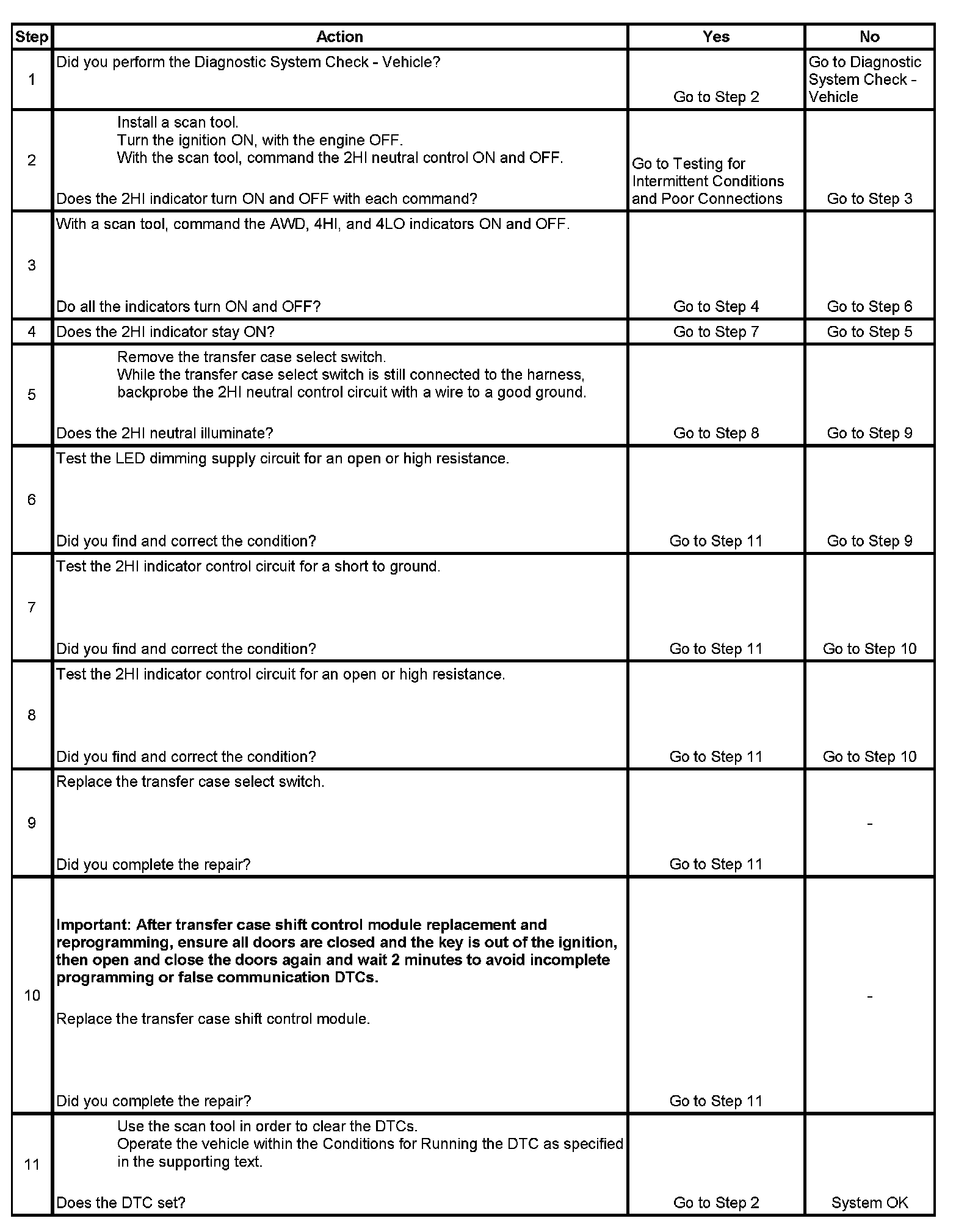 2. This step looks for the visual operation of the 2HI indicator. Command both the ON and OFF states.
