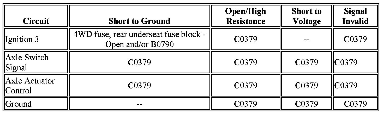 - If the 4WD fuse is open, test the Ignition 3 voltage circuit, front drive axle actuator harness X1 pin D, for a short to ground.