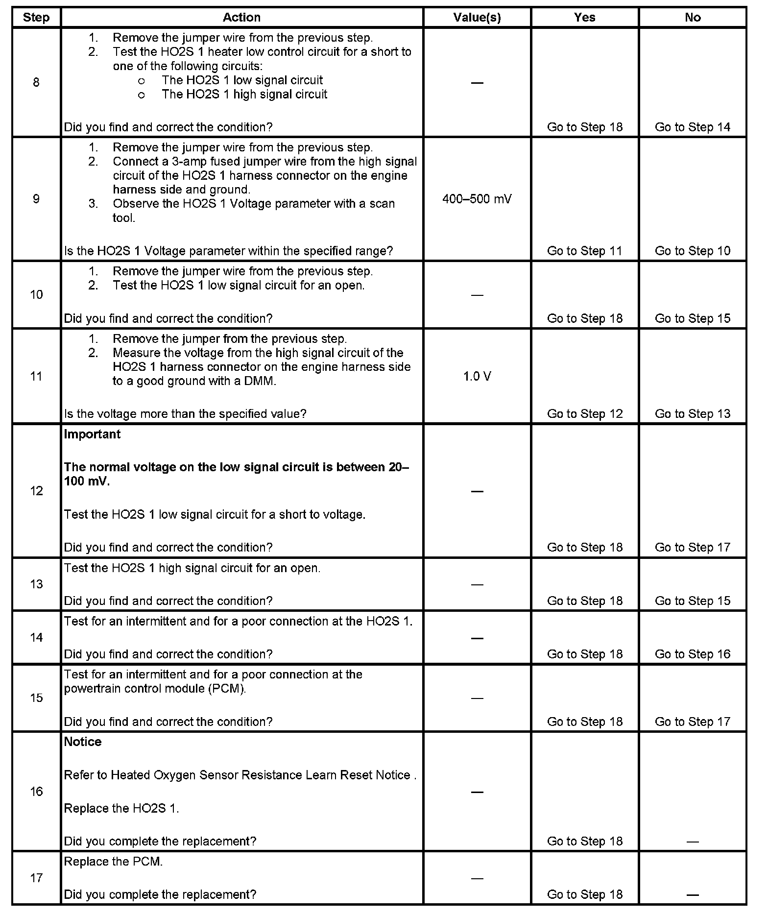 * The PCM detects that the HO2S 1 parameter is between 400-500 mV.