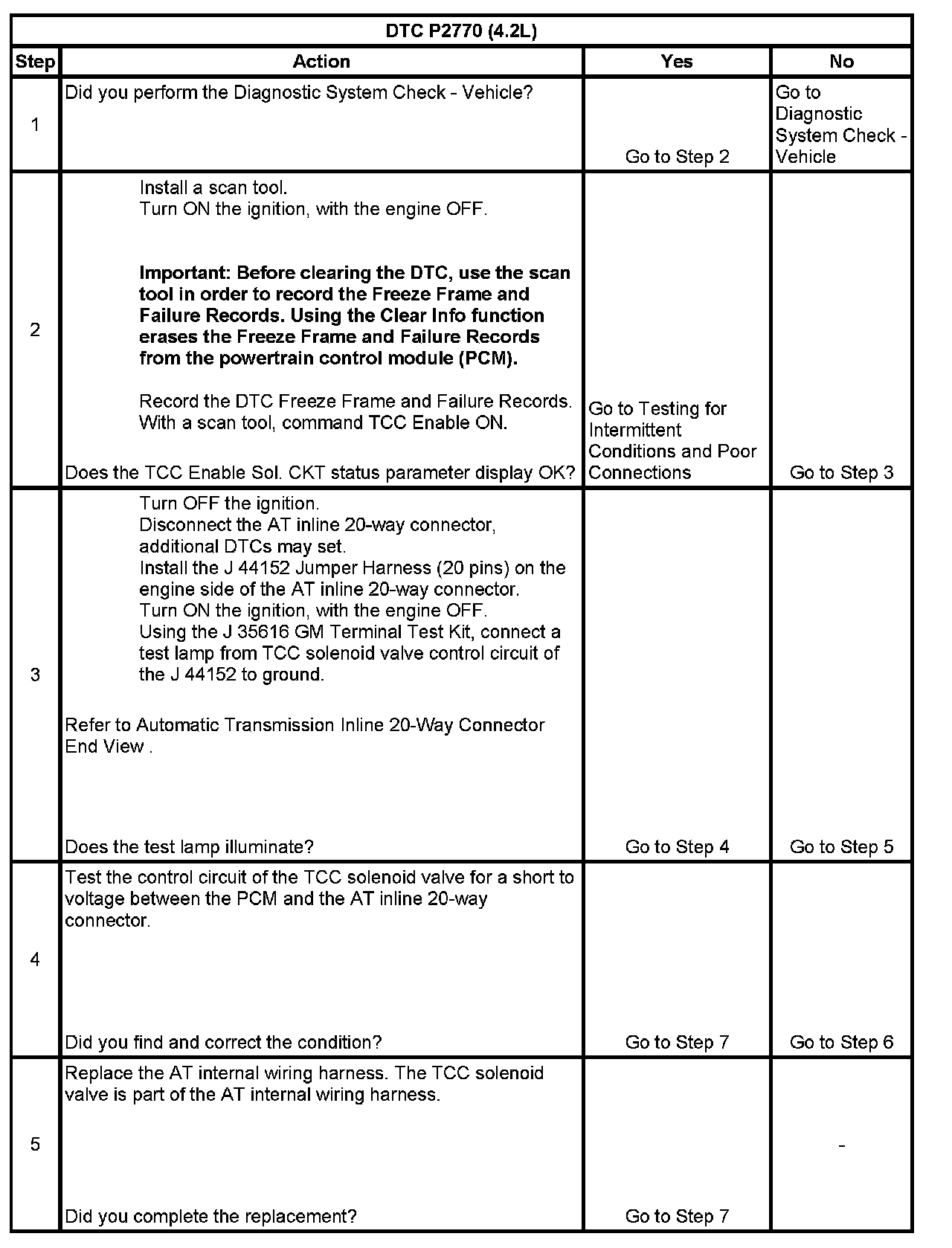 When the PCM detects a continuous short to voltage in the TCC solenoid valve control circuit, then DTC P2770 sets. DTC P2770 is a type B DTC.