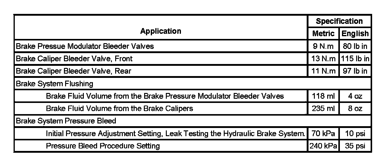 Brake Component Specifications: