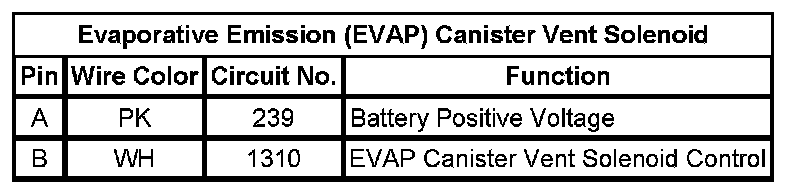 Evaporative Emission (EVAP) Canister Vent Solenoid