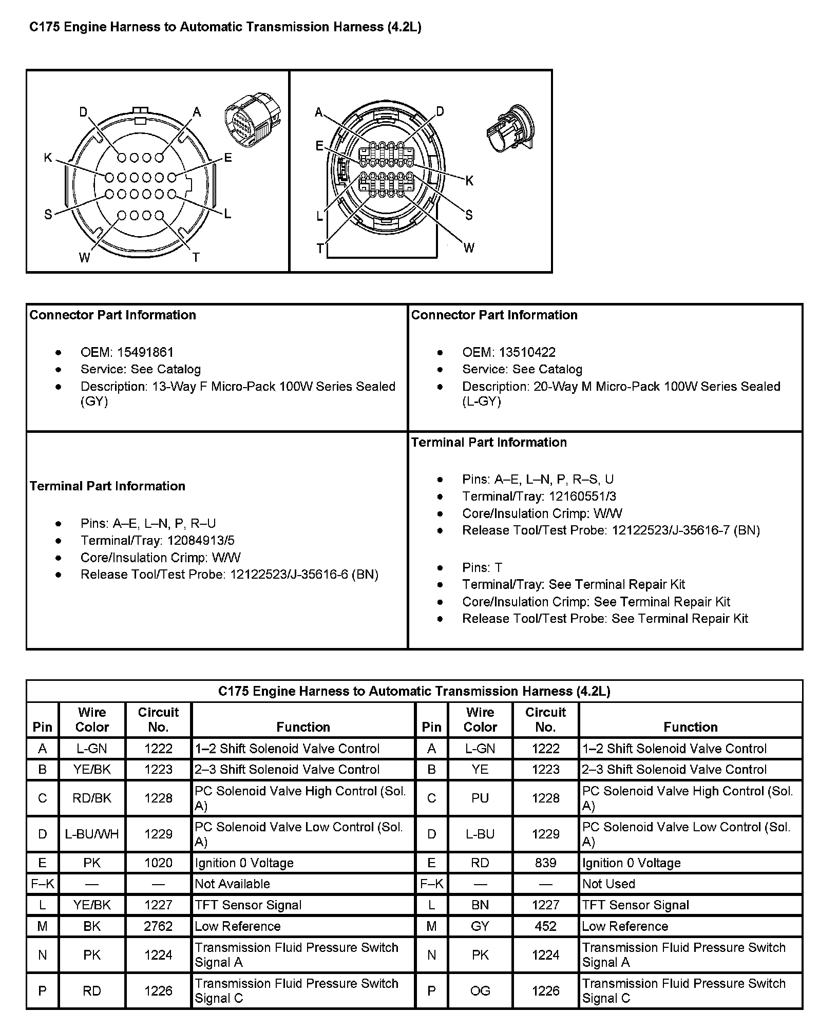C175 Engine Harness To Automatic Transmission Harness (4.2L) (pin A To P):