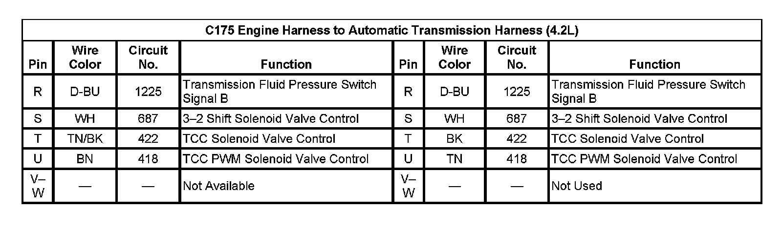 C175 Engine Harness To Automatic Transmission Harness (4.2L) (pin R To W):