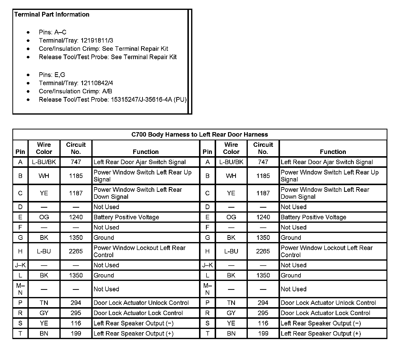 C700 Body Harness To Left Rear Door Harness (Pin A To T):